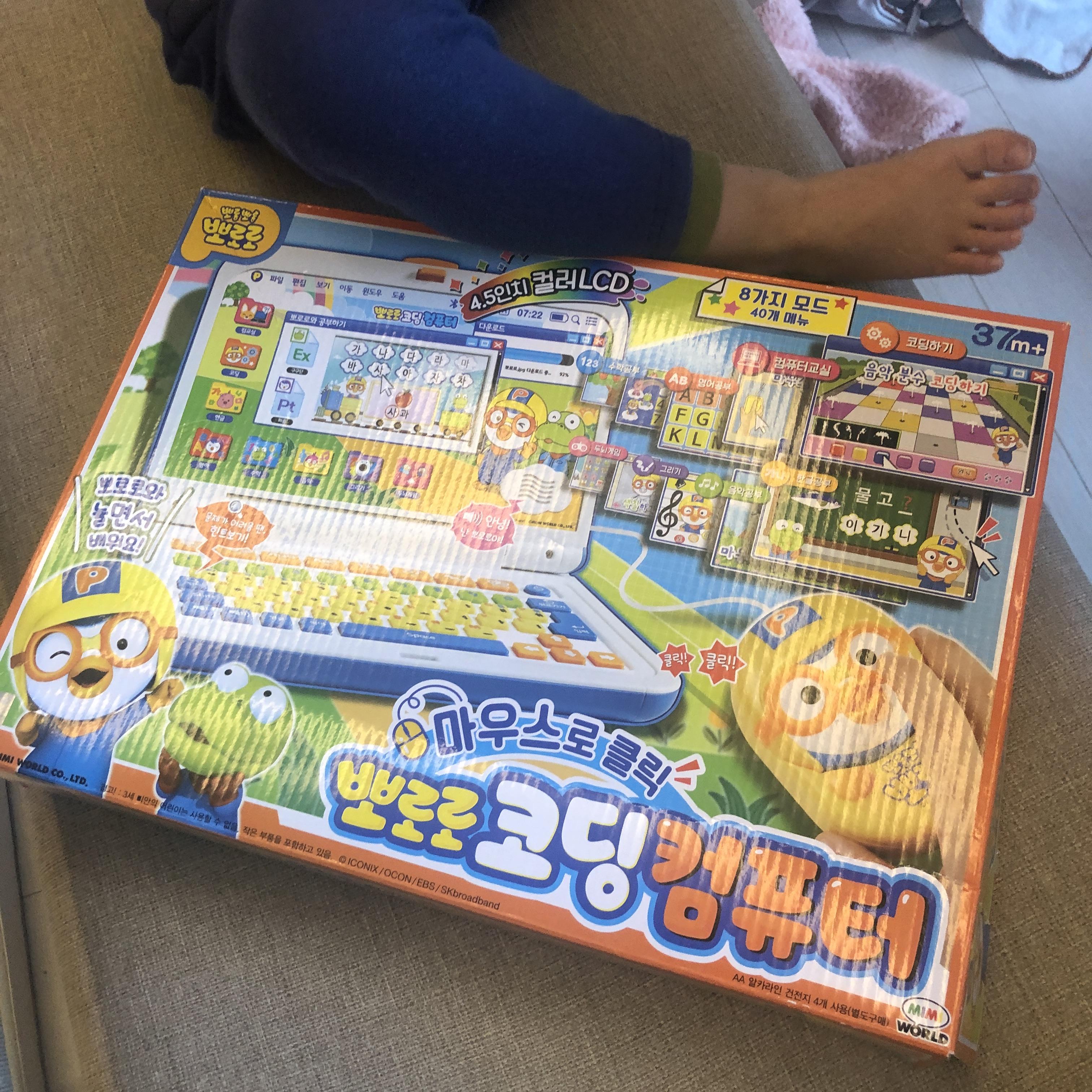 저희 둘째가 열심히 뽀로로 코딩컴퓨터를 갖고 노는 모습입니다.