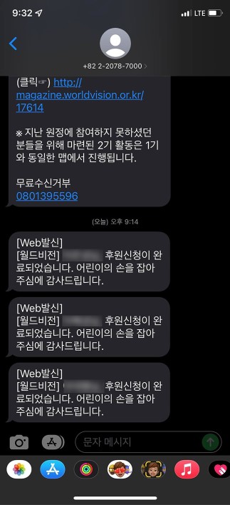 그러면 보는 것처럼 총 3명, 삼남매의 이름으로 후원 신청이 완료되었다는 메시지가 온다.