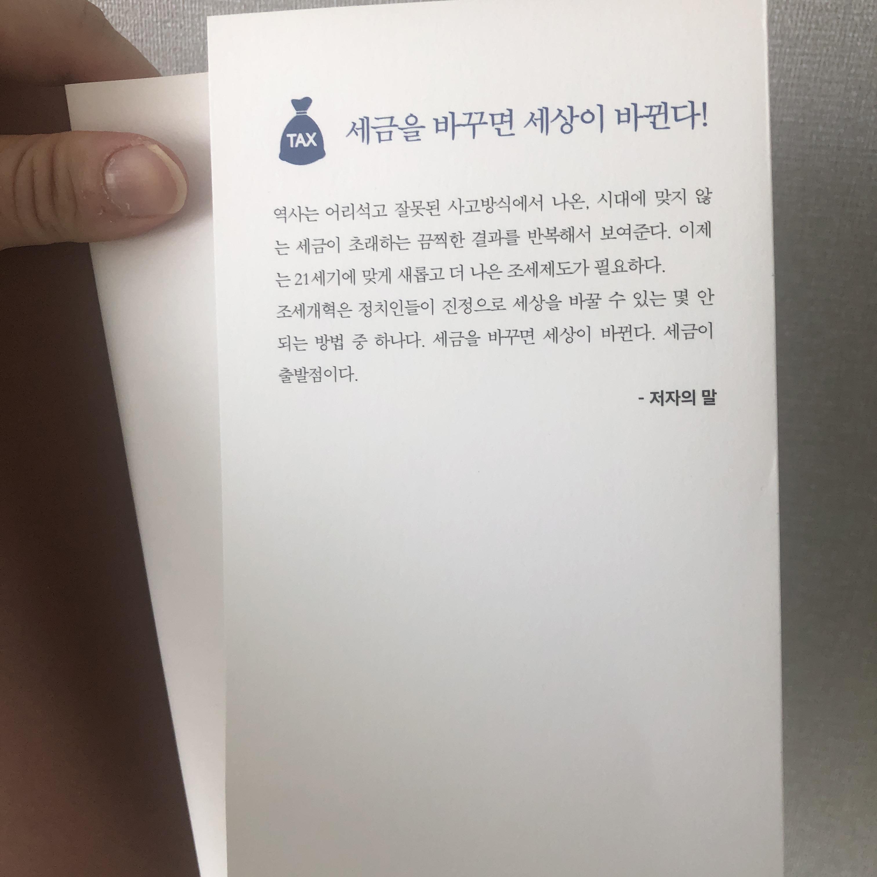 세금에 관한 여러가지 문제들에 대해서 우리는 이 책을 통해 생각해봐야 한다. 새 정부의 각료들은 이 책을 읽고 세금에 대해 전면적인 생각을 수정하였으면 하는 마음이 있다. 그래서 이 책이 브레인스토밍이 가능케하는 스톰이 되었으면 한다.