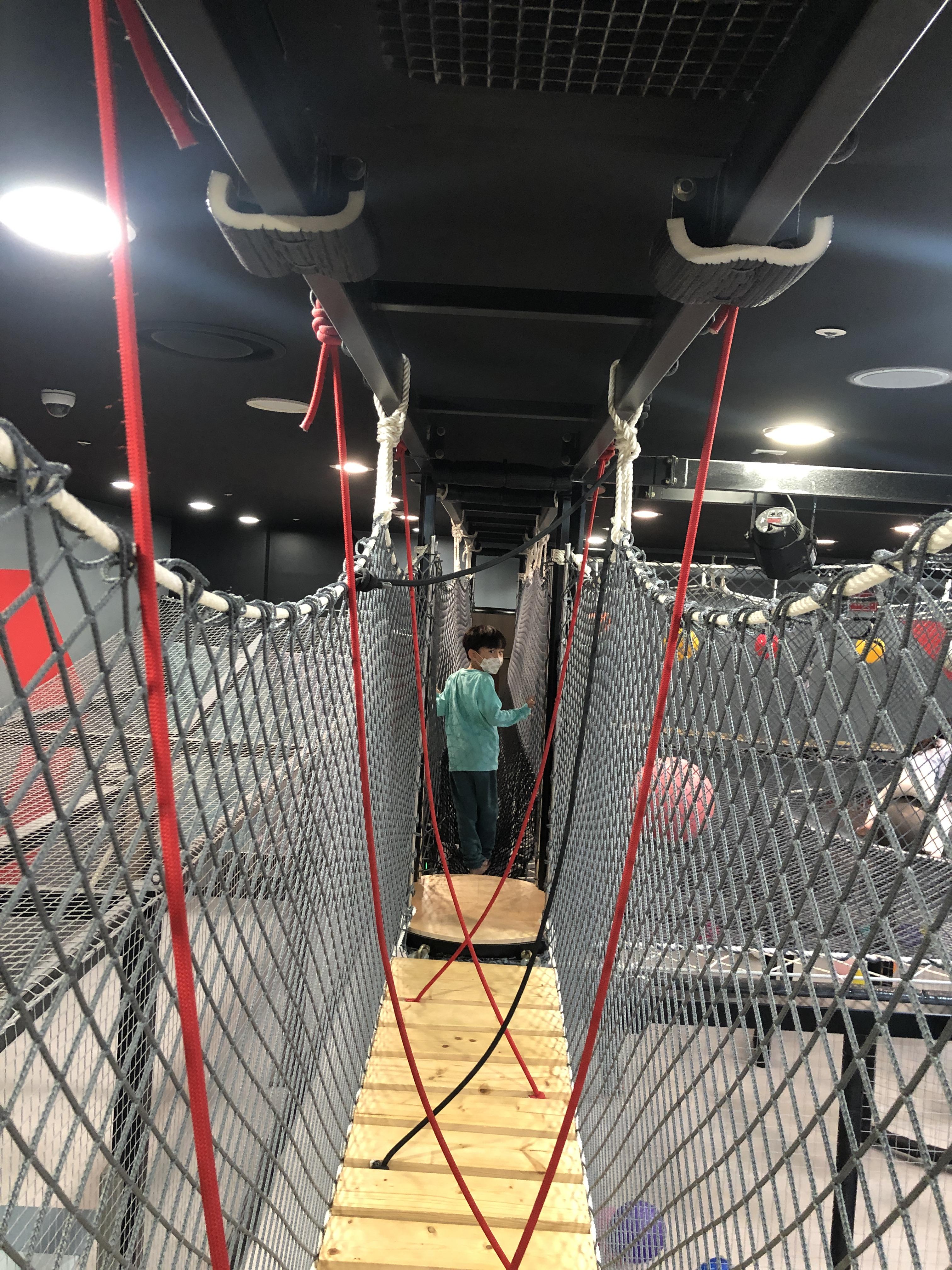 자이언트 네트입니다. 피라미드 모양의 줄 구조물에 아이가 올라가는 활동인데요. 상당히 재밌어 하고 성취감도 느낍니다. 이것도 세번 이상 올라갔습니다. 난이도 중입니다.