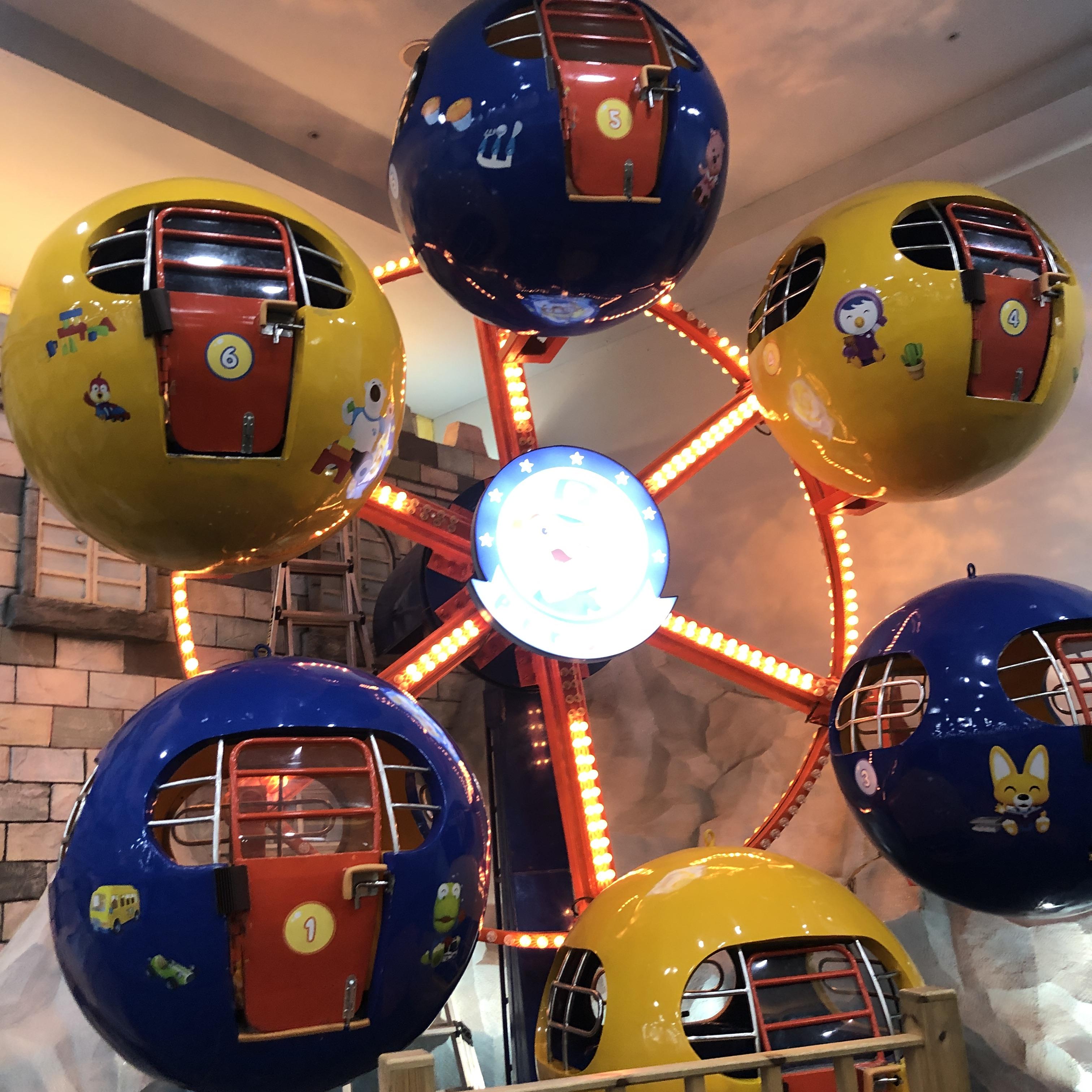 꼬마 관람차입니다. 입장 초반에는 운행을 안했는데, 시간이 좀 지나서 운행을 시작하니, 많은 사람들이 줄을 기다려서 대기하면서 탑승을 했습니다. 인기가 꽤 좋았던 놀이기구였습니다. 실내에서 관람차는 처음 보았습니다.