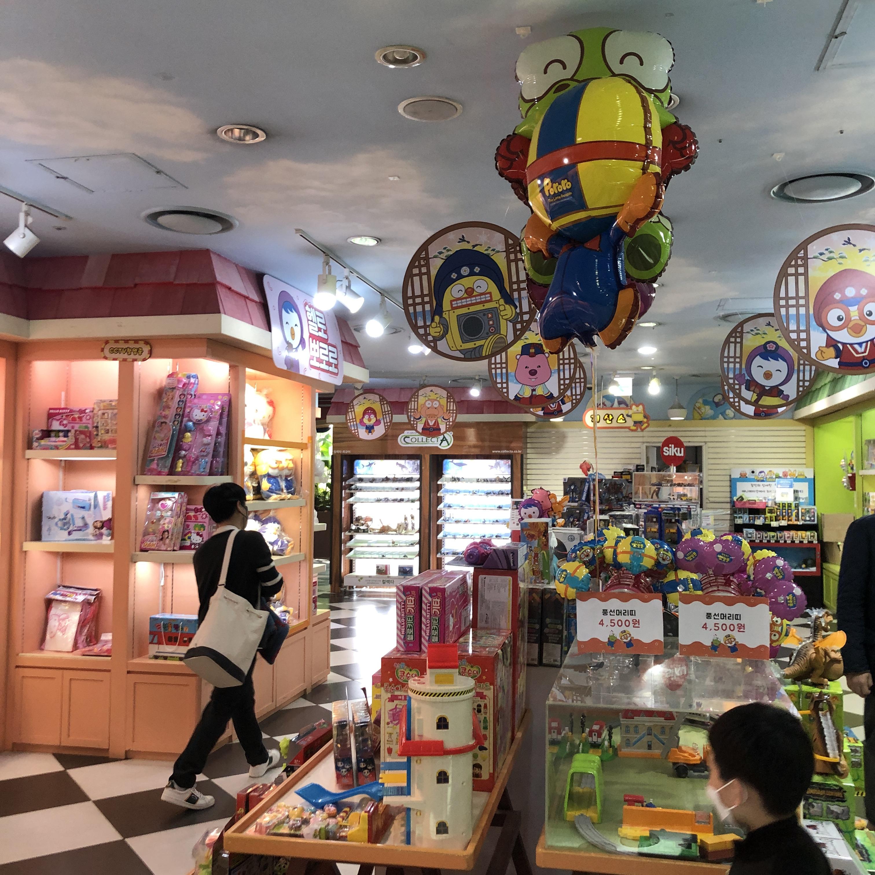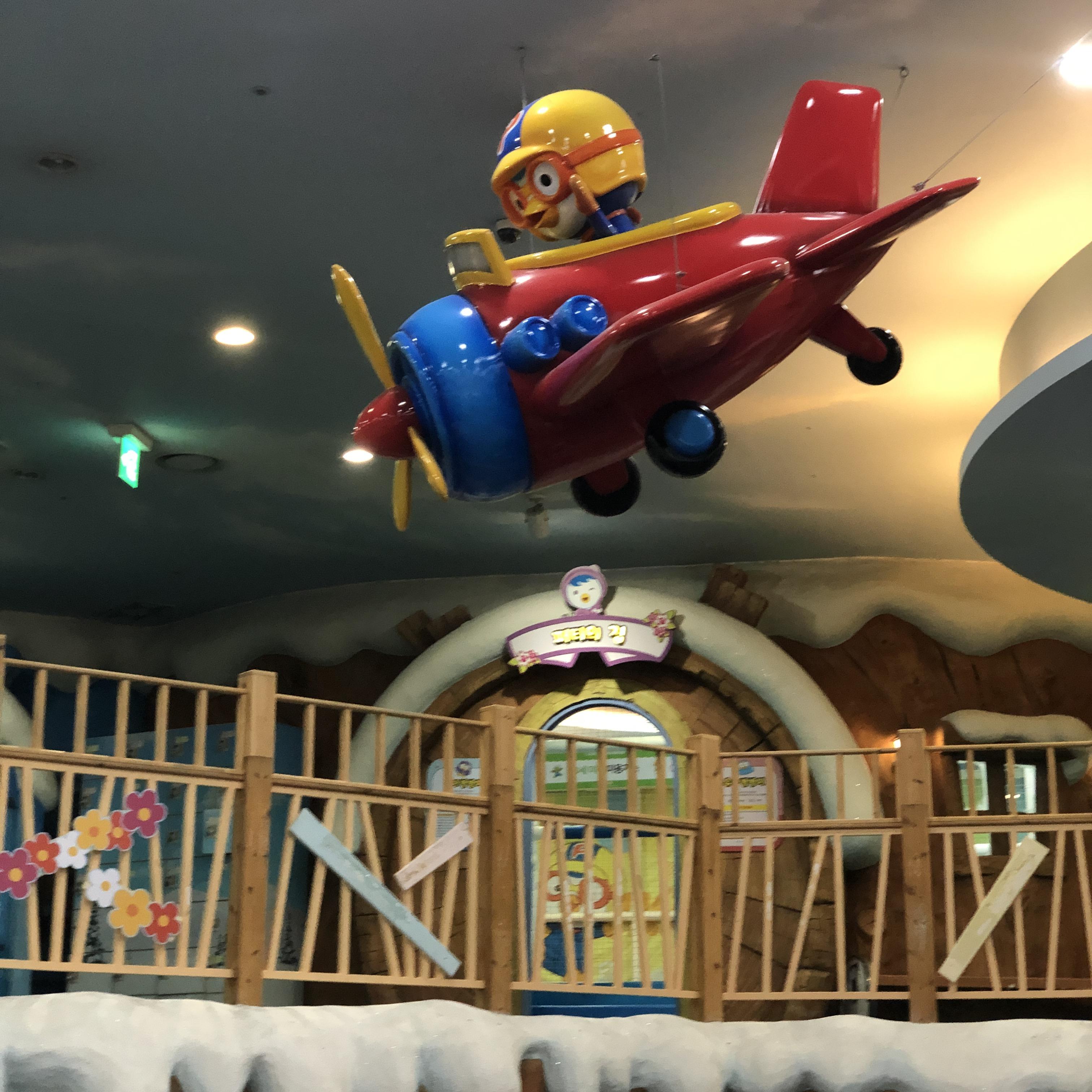 공중에는 뽀로로와 비행기가 전시되어 있습니다. 아이들이 상당히 좋아합니다.