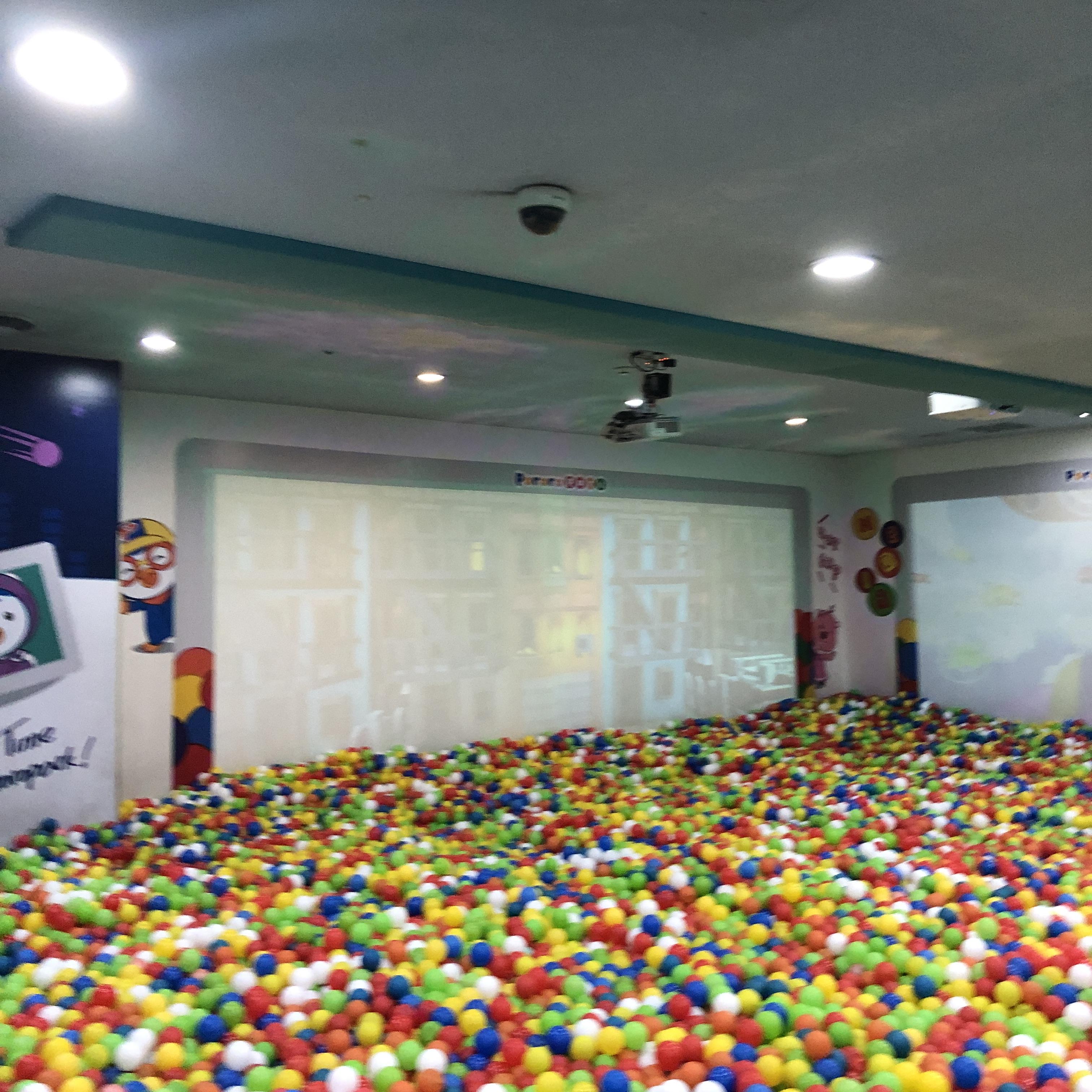 미디어 볼풀장입니다. 빔을 보면서 공을 갖고 노는 것인데요. 항상 이런 곳에서 놀때 아쉬운 점은 빔 해상도가 상당히 떨어진다는 점입니다. 고해상도 빔을 쏠 수 있으면 참 좋을텐데 아쉽습니다.
