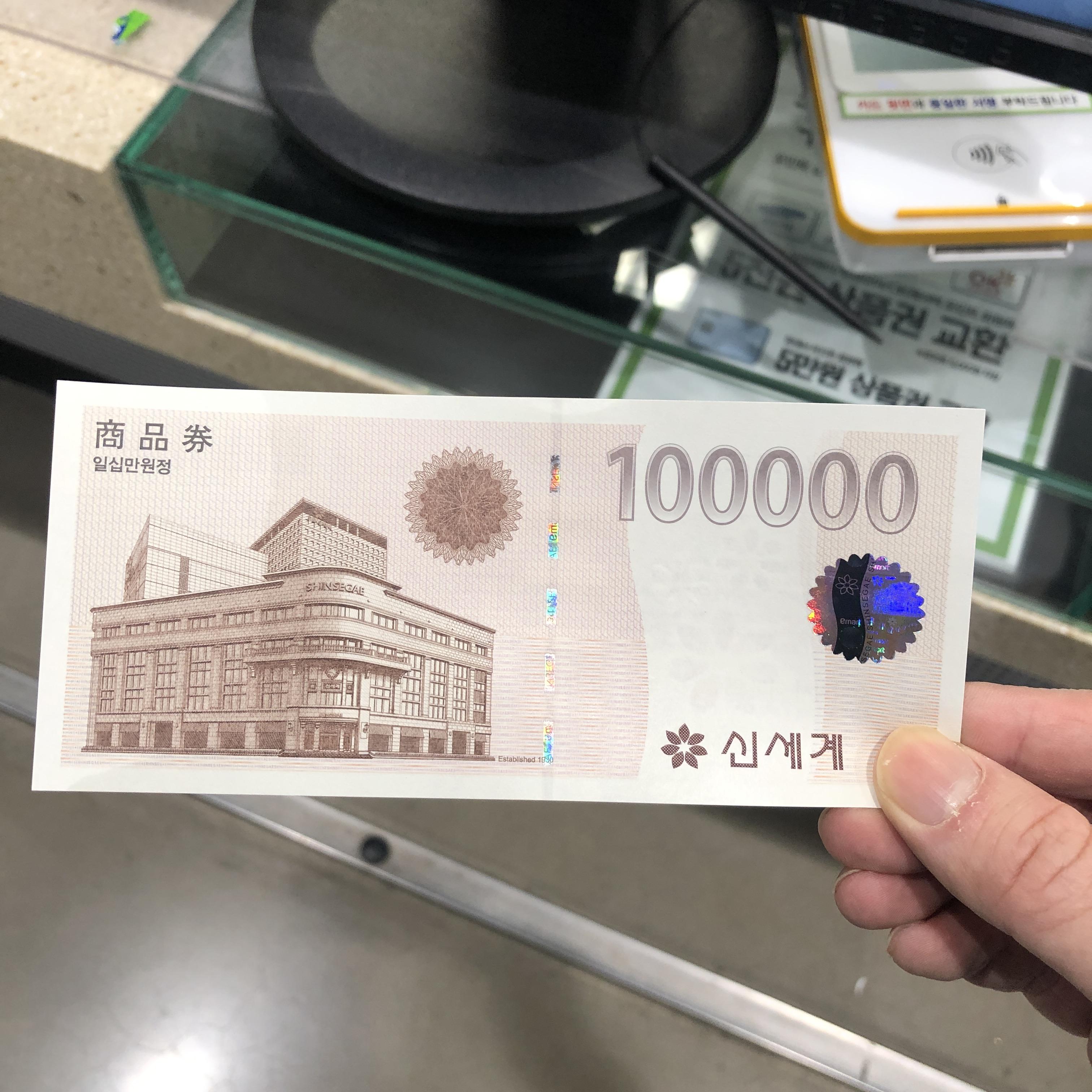 신세계 상품권 100,000원을 3퍼센트 할인받아 97,000원에 구입했다.