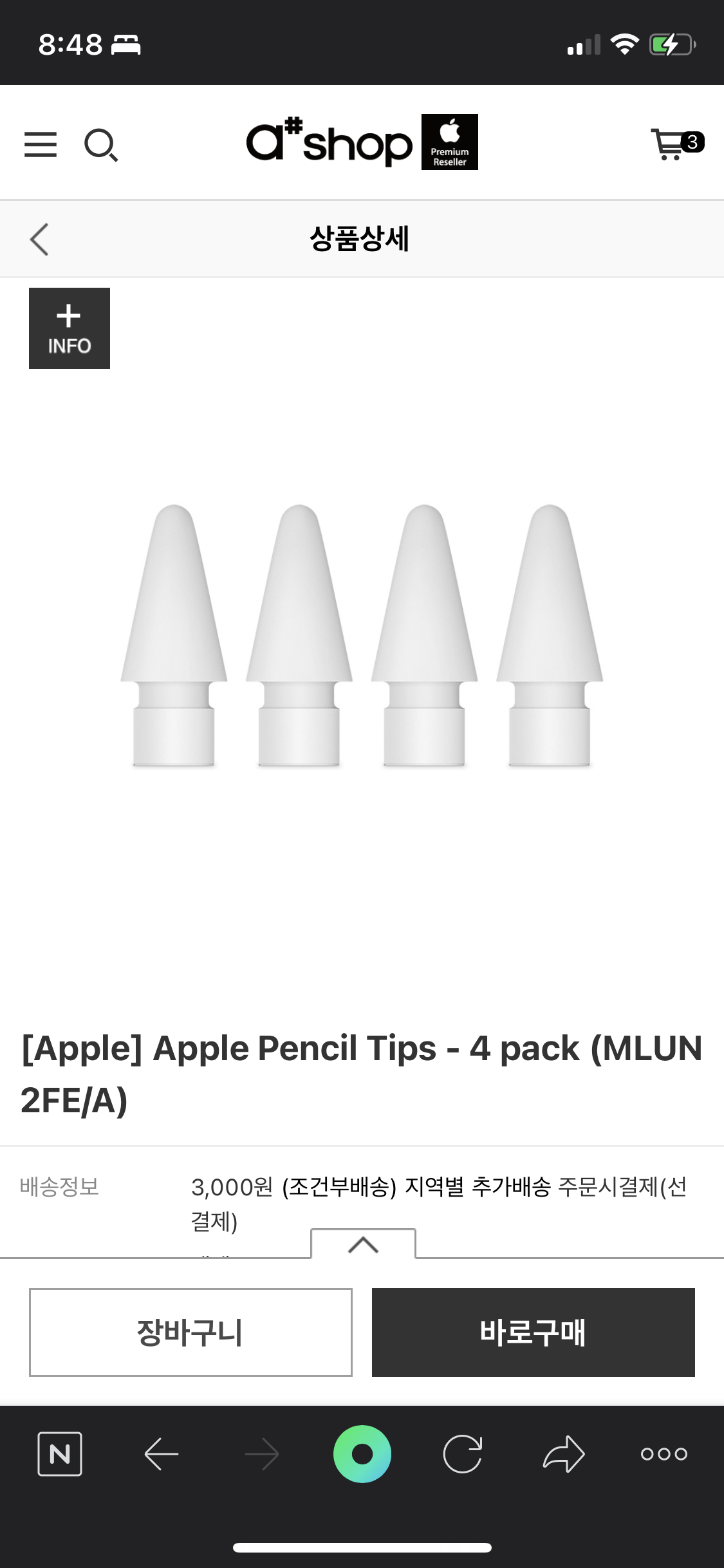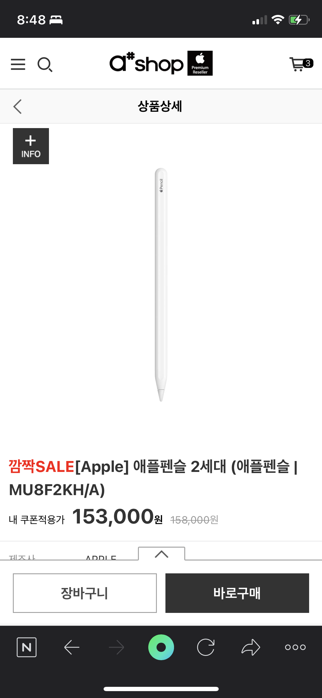 검색 도중 우연치 않게 에이샵 온라인 매장에서 애플 펜슬 2세대 MU8F2KH/A 깜짝 할인을 하는 것을 발견했다.