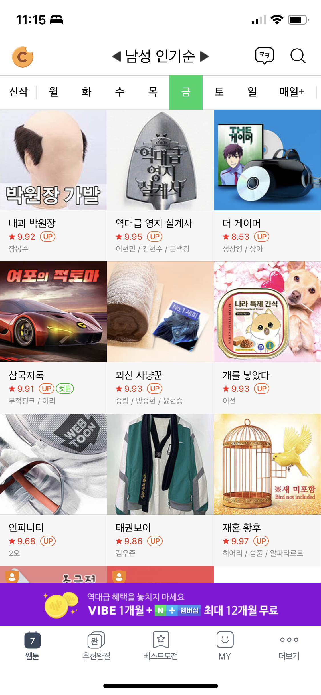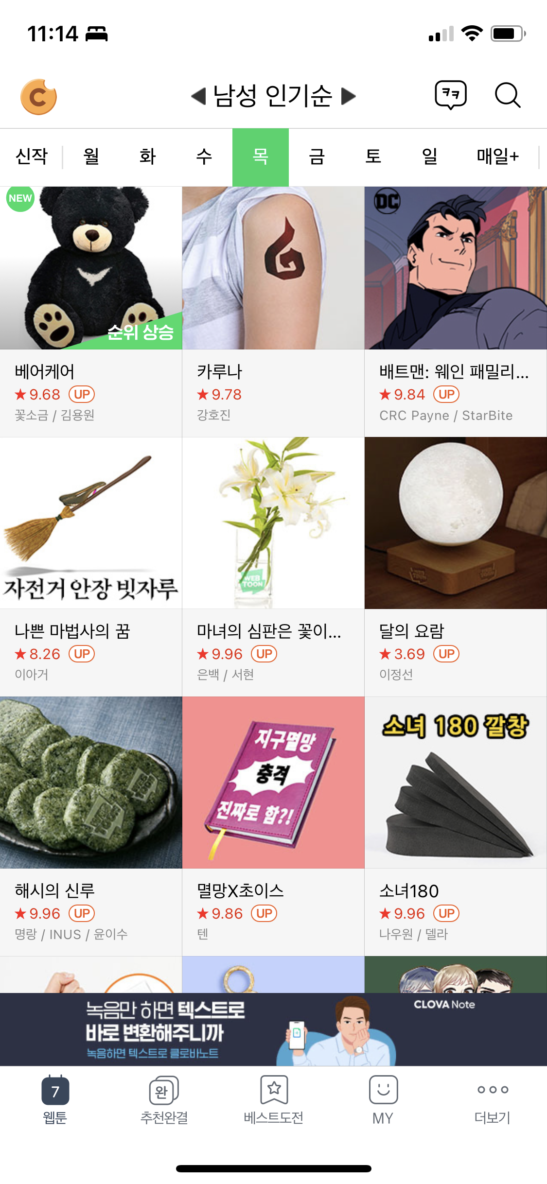 네이버웹툰 상단에 이벤트를 클릭하면 속보가 나온다.