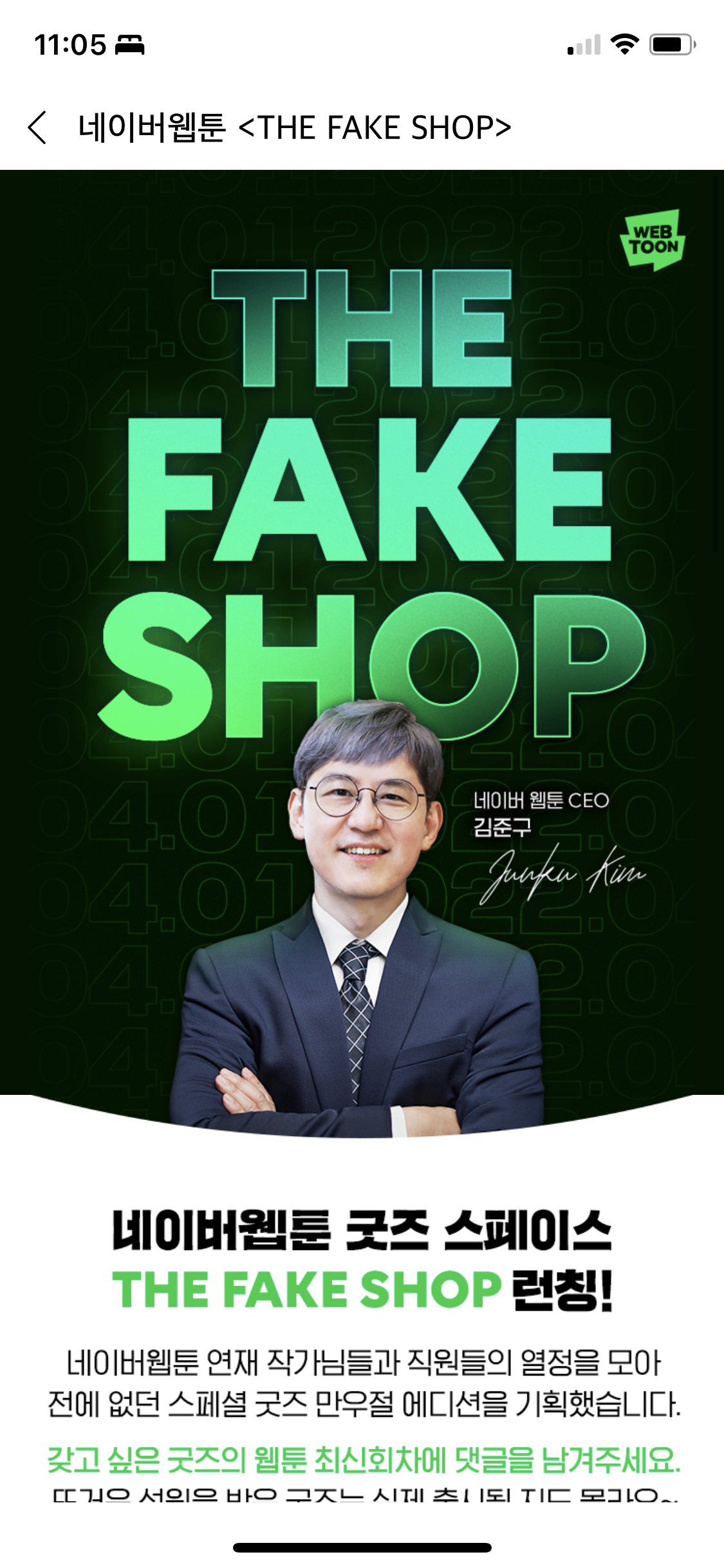 올해도 어김없이 네이버웹툰 만우절 이벤트를 실시하는데, 바로 네이버웹툰 굿즈 만우절 에디션을 판매하는 THE FAKE SHOP이다.