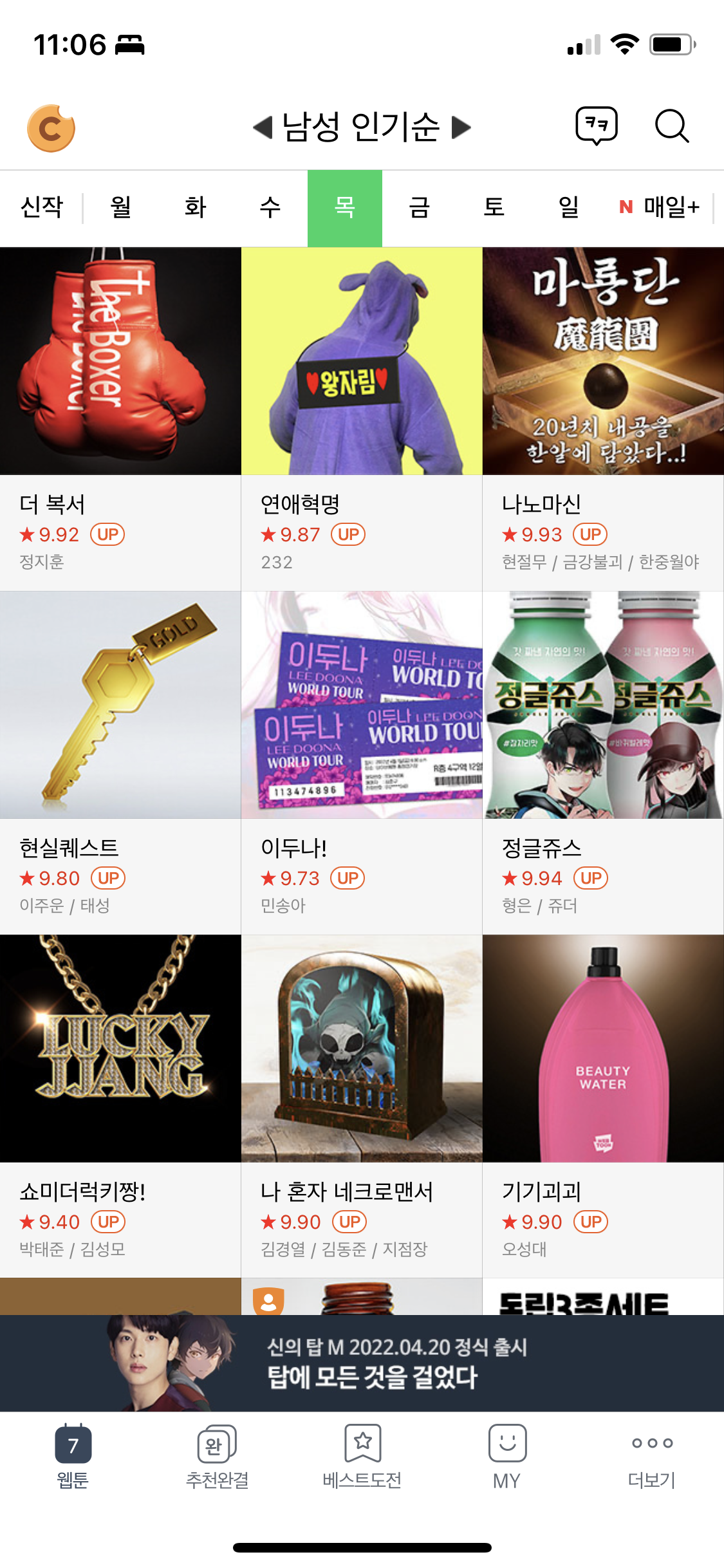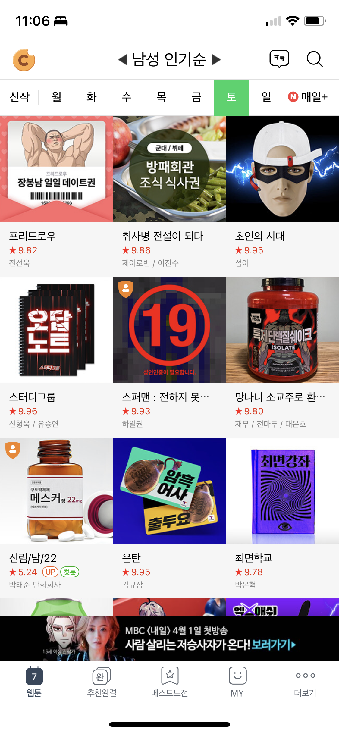 내가 즐겨보는 웹툰 위주로 남겼으니, 궁금하신 분은 4월 1일이 지나기 전에 꼭 찾아보자.