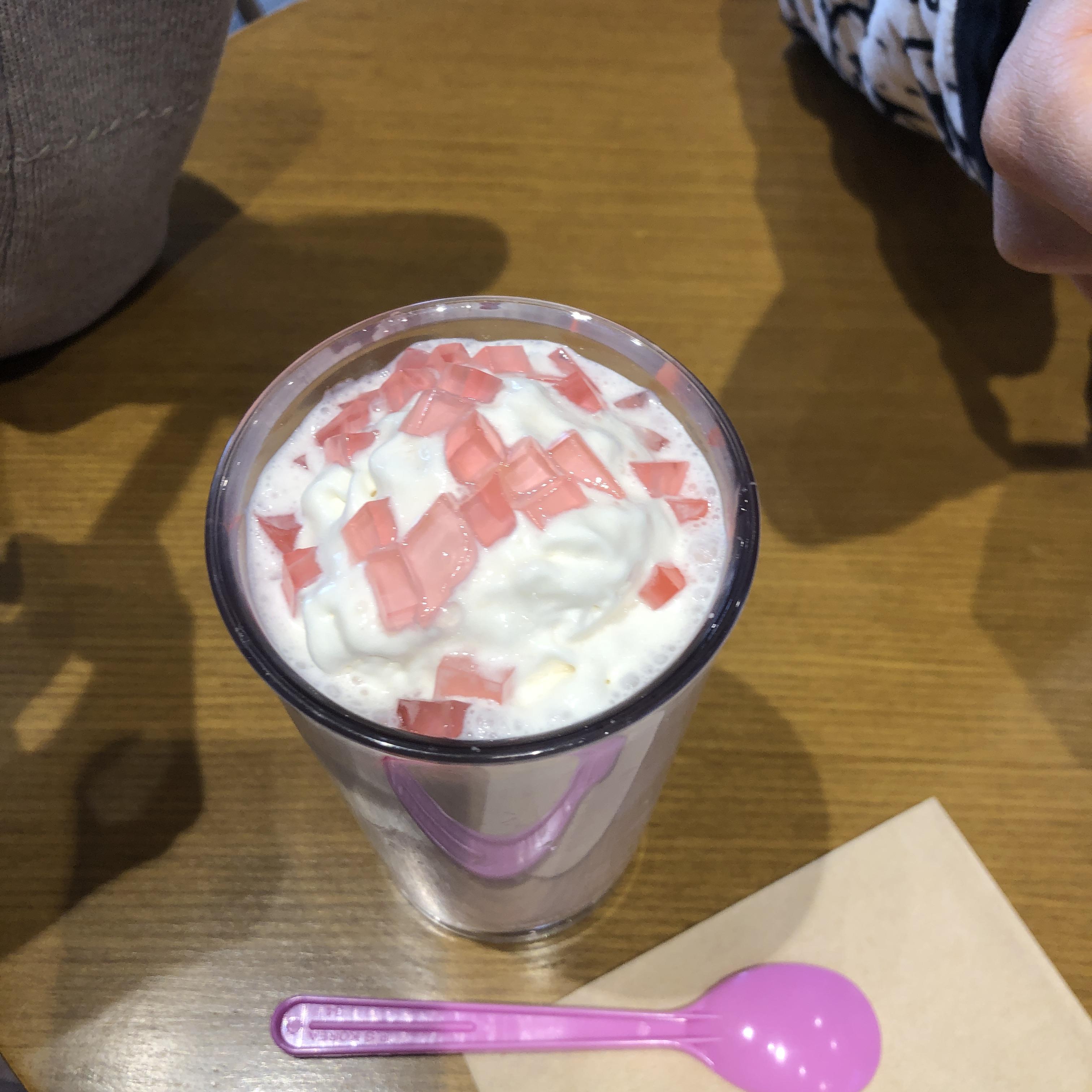 먼저 딸기 말랑 블라스트를 주문했다. 딸기 말랑 블라스트는 시즌 음료로서 딸기 제철인 봄에만 먹을 수 있다. 딸기에 딸기 젤리가 듬뿍 담긴 맛있는 음료다.