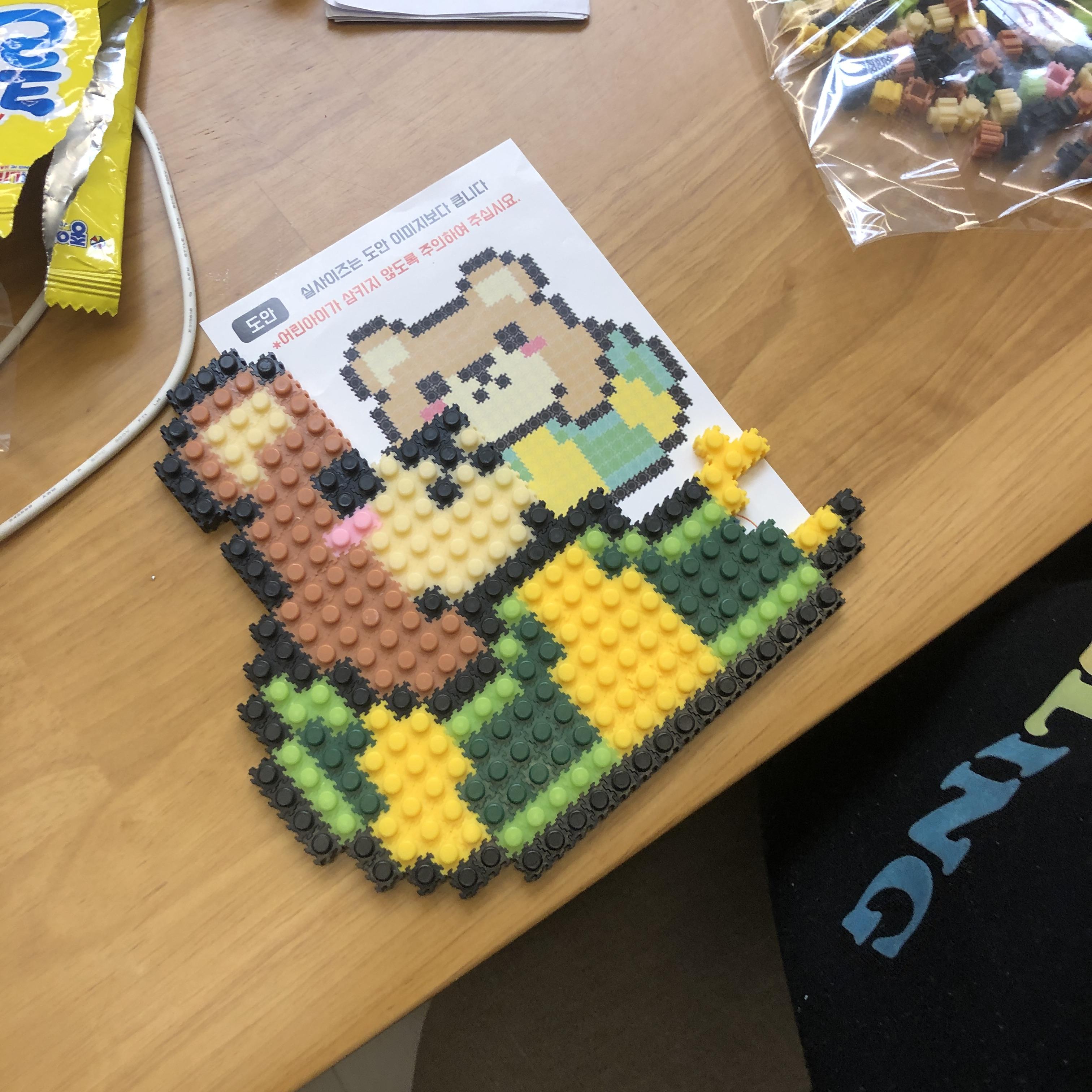사진에 보이는 네모난 판은 냉장고에 붙일 수 있는 마그넷이다. 디폼블럭을 모두 만들면 블럭이 약간 남는데, 여분의 블럭으로 마그넷판에 조립할 수 있다.