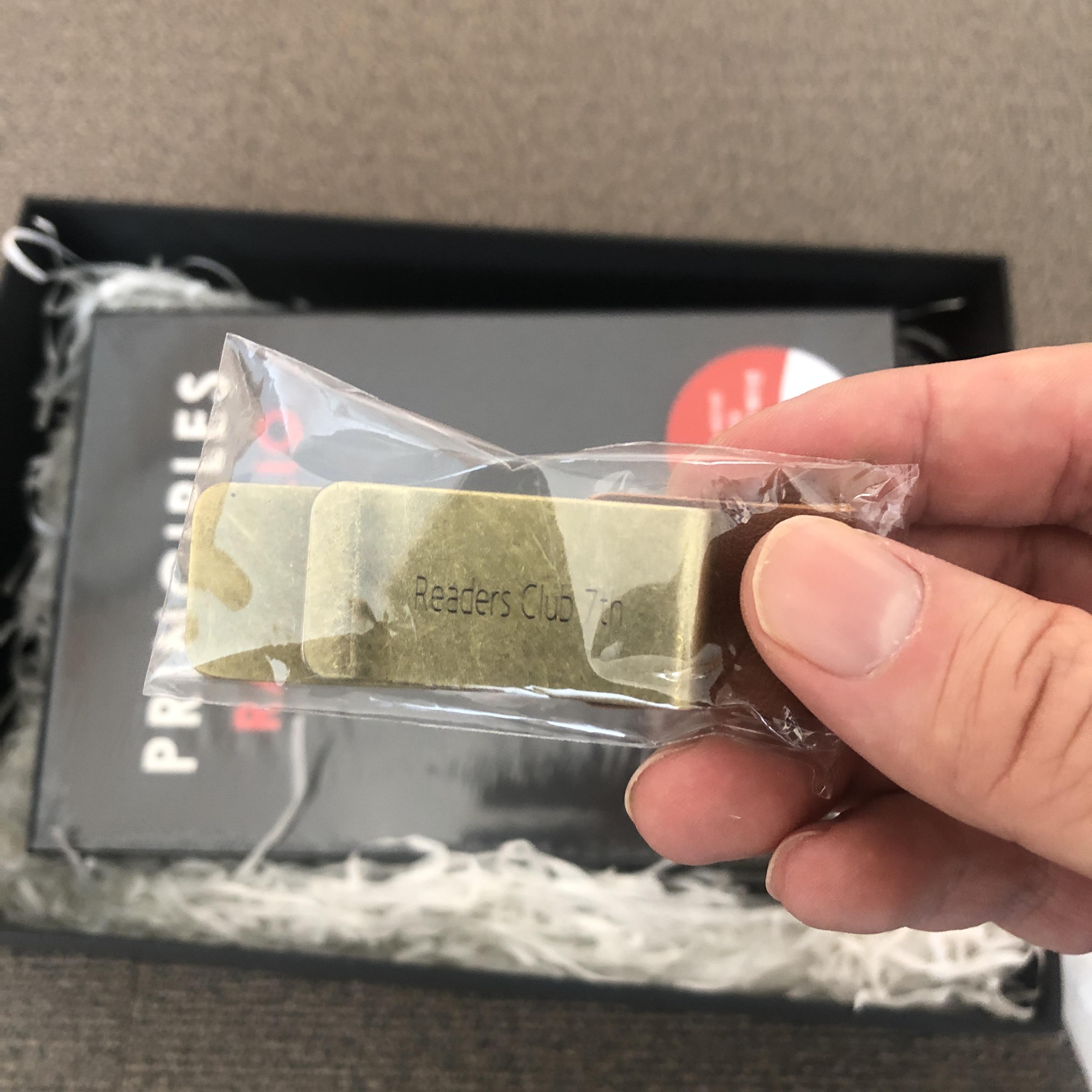 펜 홀더 책갈피입니다. 펜을 끼어서 책갈피로 활용 가능합니다. 이건 리더스클럽 6기 웰컴 키트에 있던 것과 동일한데, 각인이 다릅니다. 정말 세심한 한빛비즈의 정성이 여기서 드러납니다. 펜 홀더 책갈피를 제외하고는 6기 웰컴키트와 겹치는 품목이 하나도 없습니다.