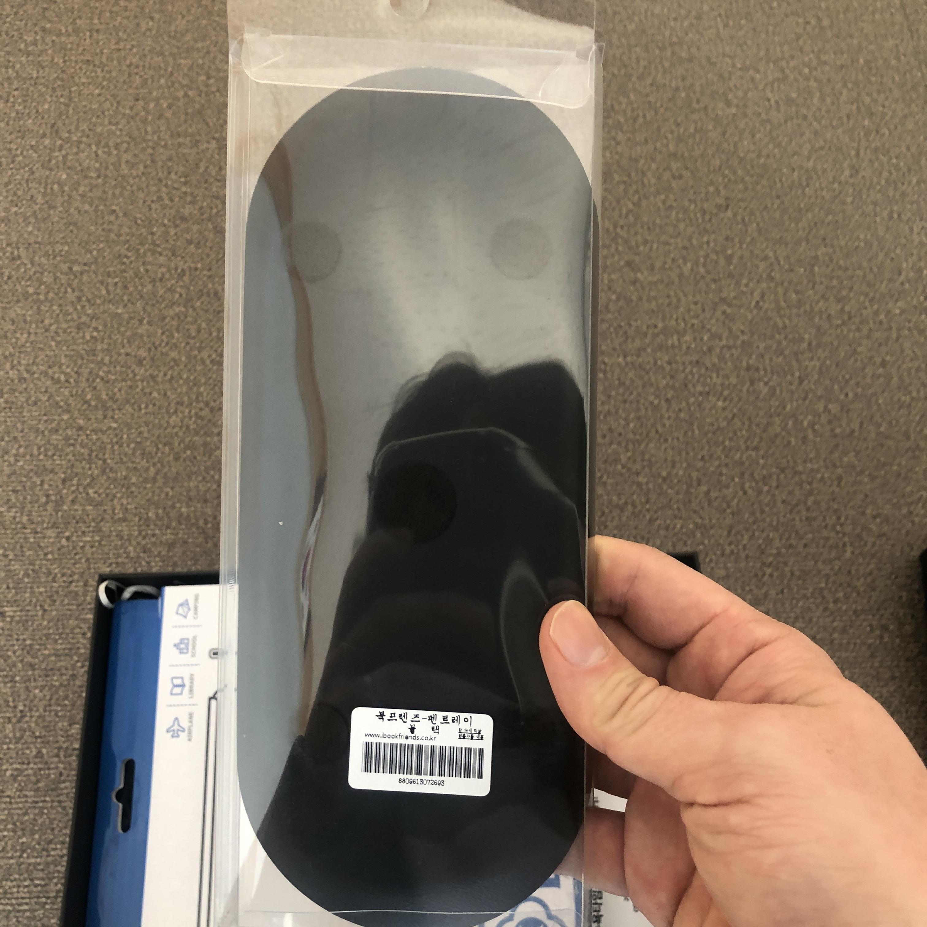 펜 트레이입니다. 저는 블랙 펜 트레이를 받았습니다. 철제 펜 트레이라 촉감 느낌이 좋습니다. 다양한 필기구를 펜 트레이에 올려 놓고 보관합니다.