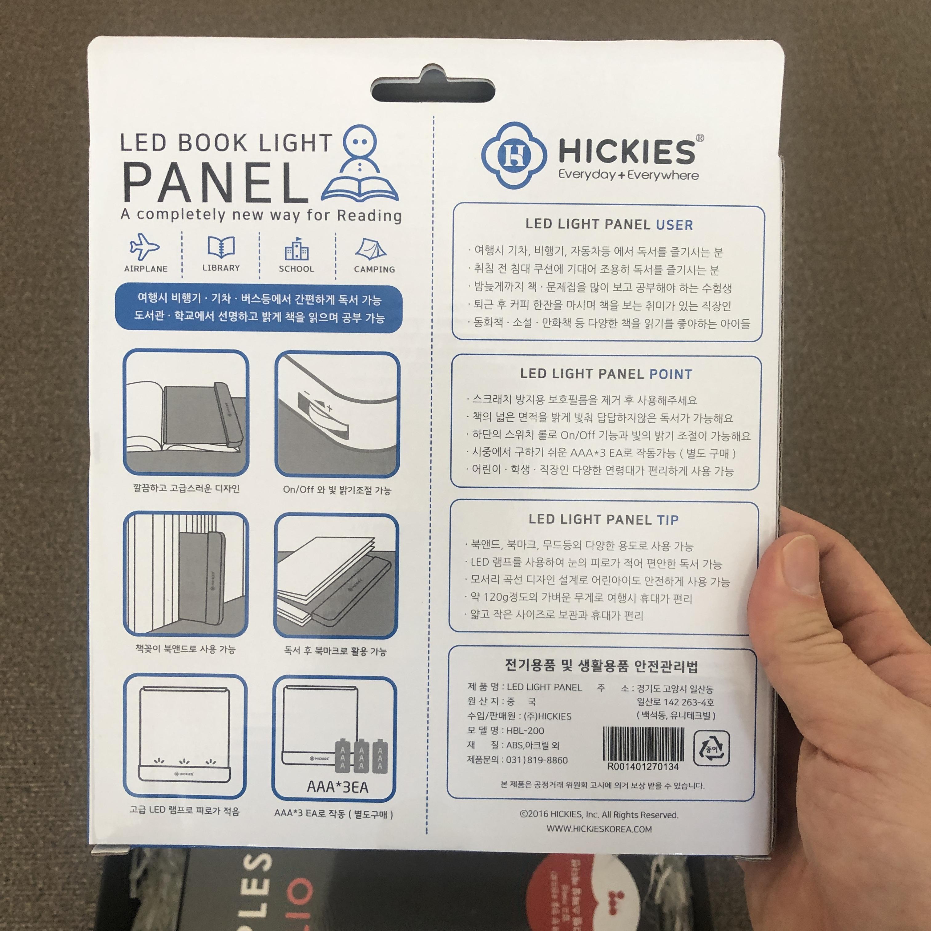 LED 패널 북 라이트입니다. 책갈피로도 활용 가능하며, 약간 어두운 곳에서 책 읽을 때 유용합니다.