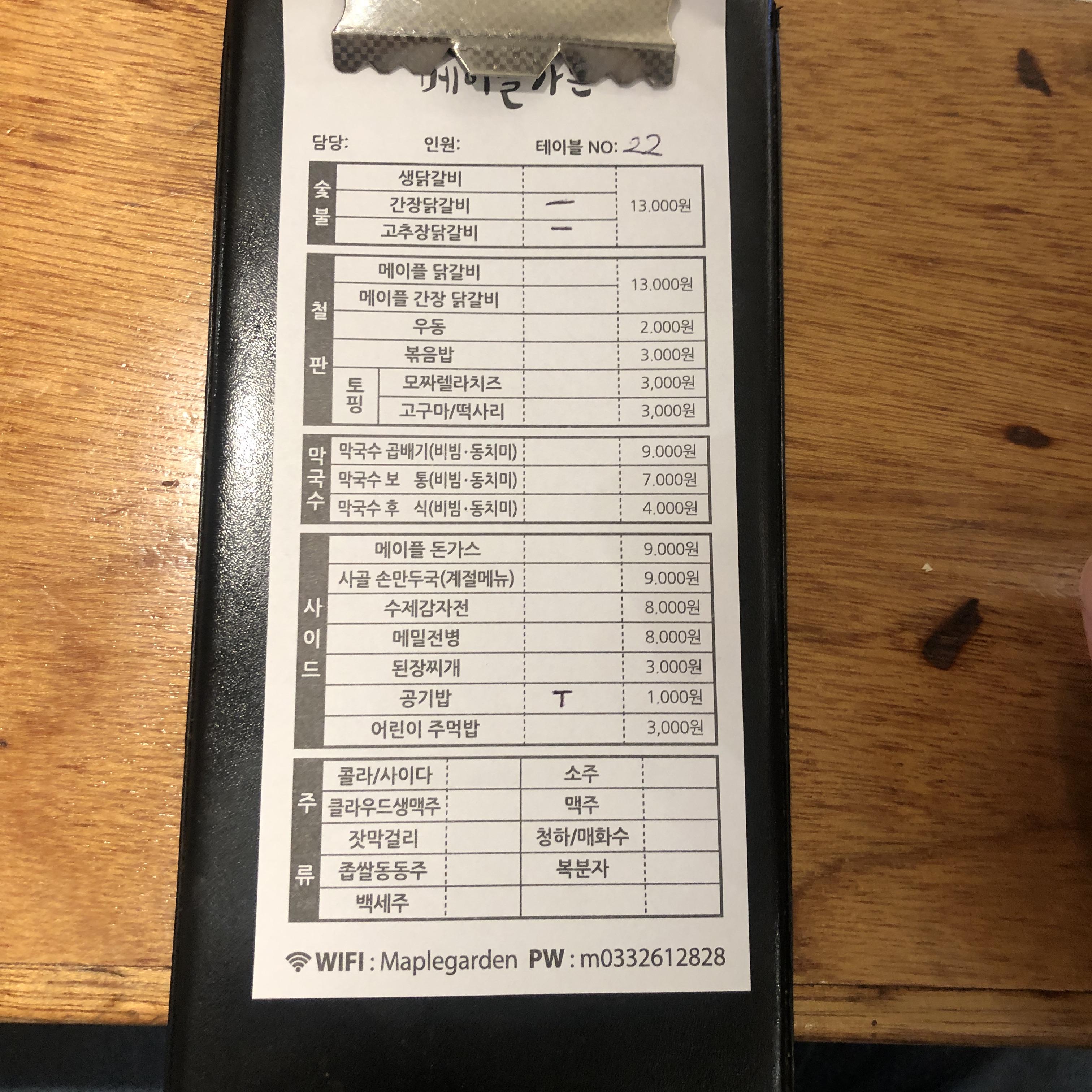 메이플가든 닭갈비 메뉴