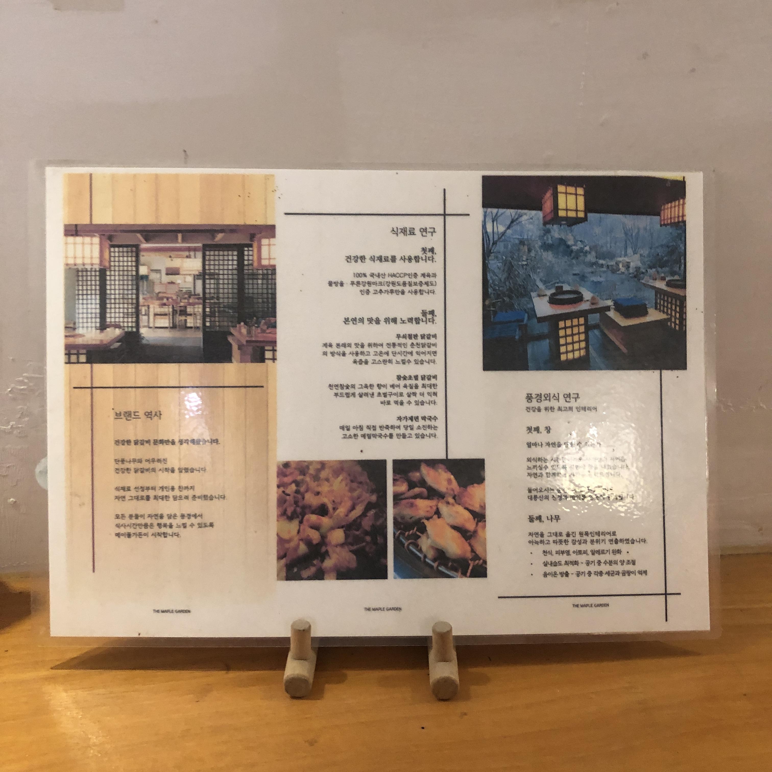 메이플가든의 브랜드 역사와 식재료 연구, 풍경외식 연구에 관한 글을 볼 수 있었습니다.