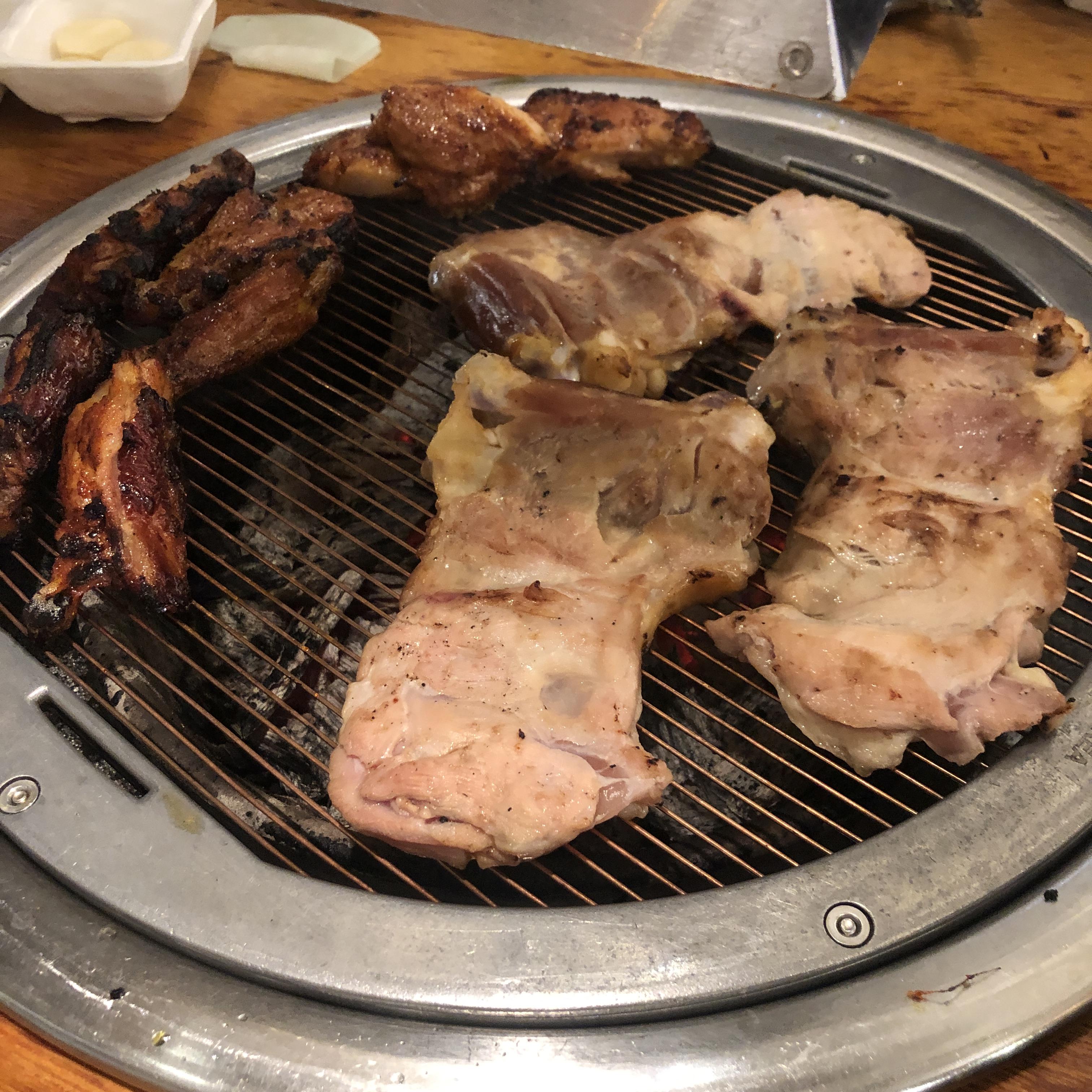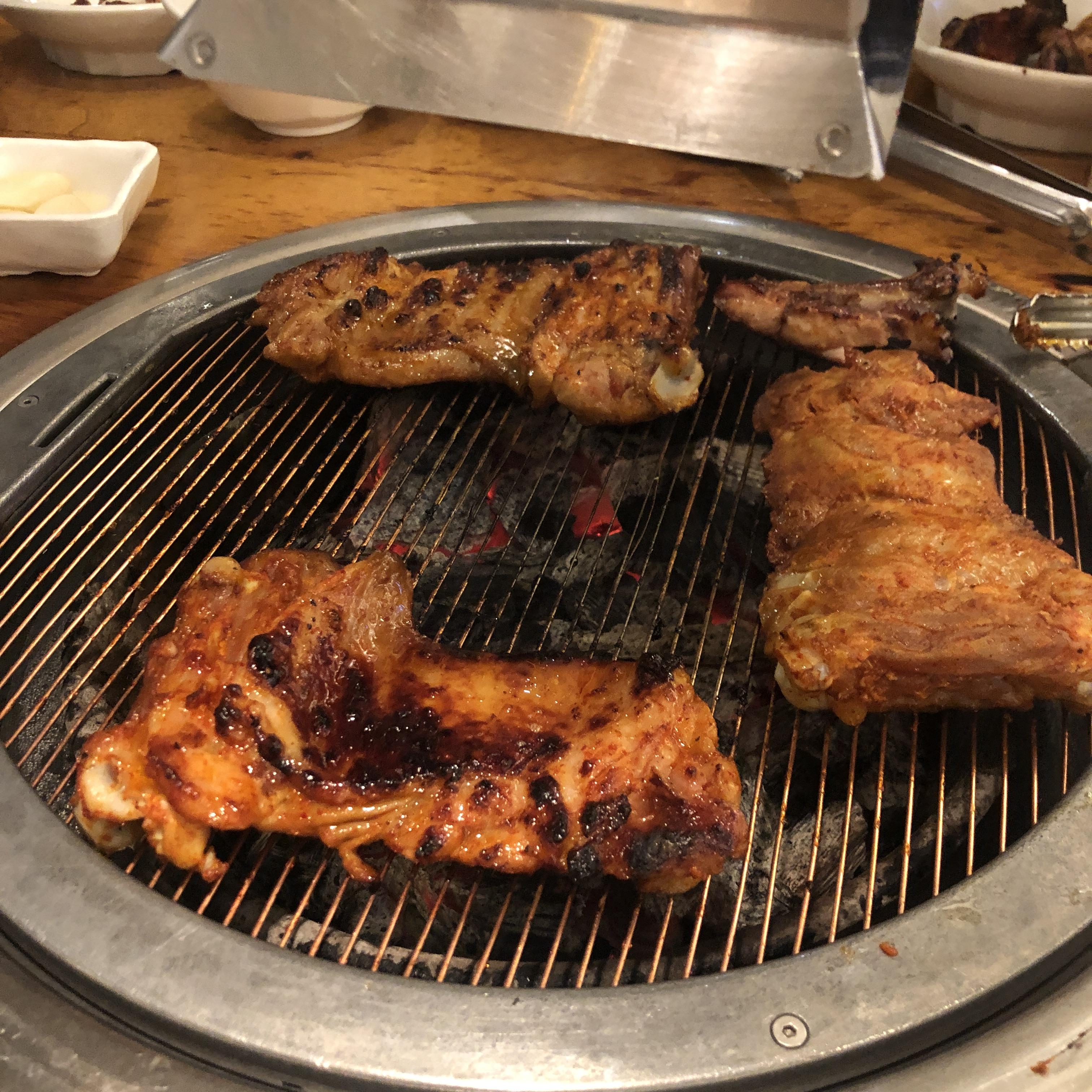 간장닭갈비와 고추장닭갈비를 각각 주문해서 구웠습니다.