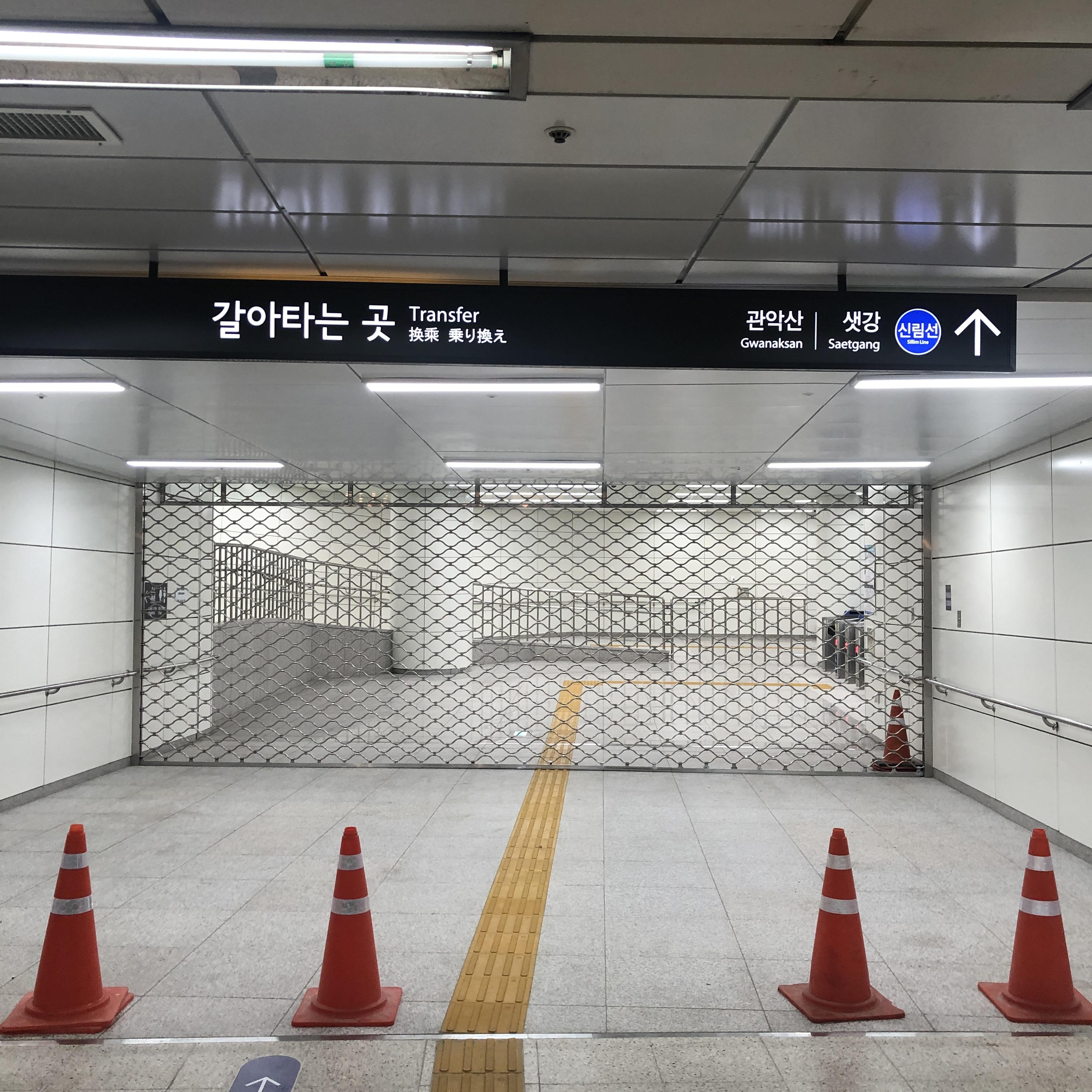 개통 전에 찍은 사진으로 위와 같이 환승통로가 닫혀있는 모습을 볼 수 있습니다.