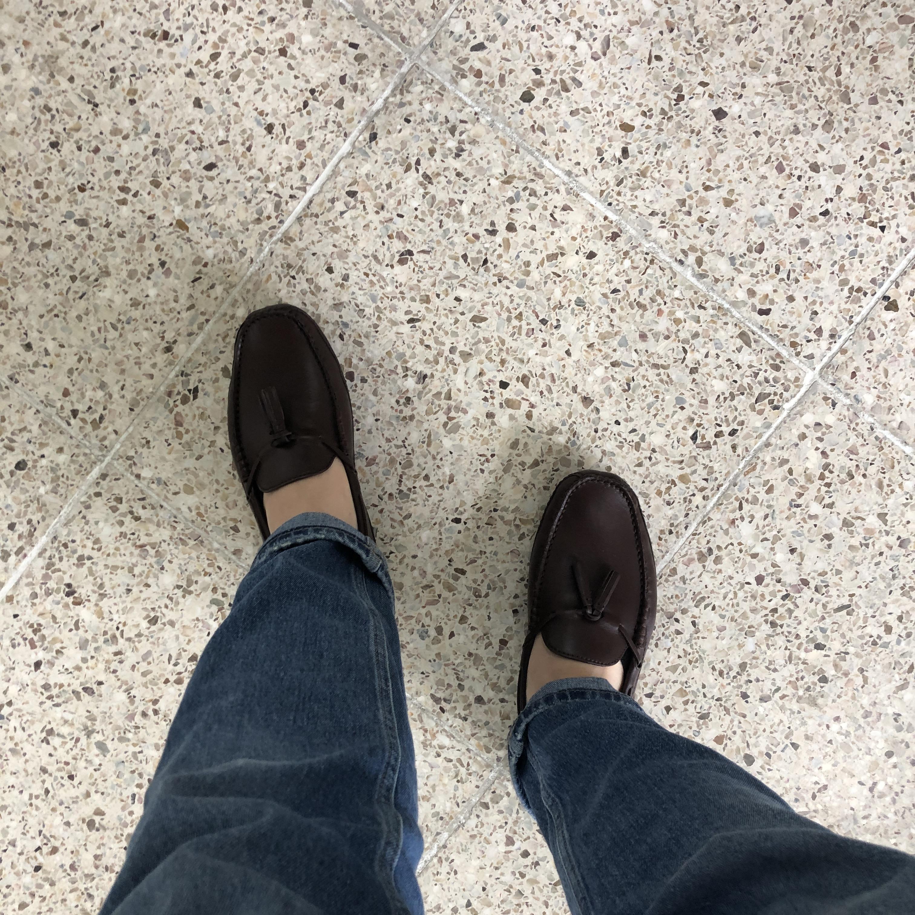 제가 쿠에른 로퍼를 신고 가장 마음에 들었던 점은 청바지든, 슬랙스든, 면바지든 어느 바지에도 모두 잘 어울린다는 점이었습니다. 특히 검정색과는 달리 에스프레소 색은 어느 색깔의 바지에도 모두 잘 어울렸습니다. 지금 사진은 연청바지에 신은 것인데 너무 예뻐 마음에 들었습니다.