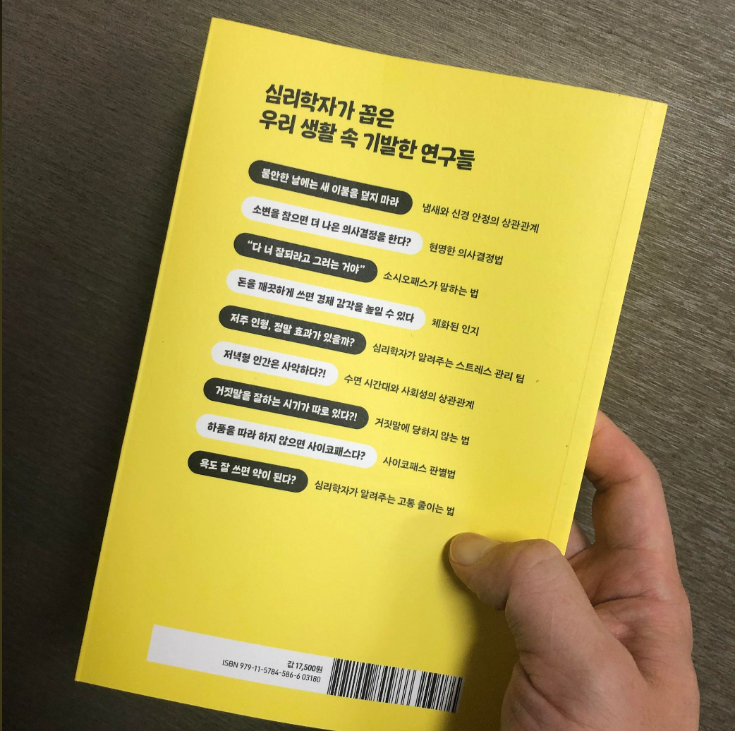 결국 인내할 수 있는 상황을 자연스럽게 만드는 것이 중요함을 알 수 있는 장면이었습니다. 이처럼 <이그노벨상 읽어드립니다>는 이그노벨상을 수상한 연구를 우리의 삶에 적용할 수 있도록 매우 구체적이며 상세하게 다루고 있습니다. 특히 <이그노벨상 읽어드립니다> 내용이 좋은 점은 바로 이그노벨상을 수상한 연구를 기반으로 책 내용을 풀어간다는 점입니다. 이는 확실한 심리학적 연구를 기반으로 책의 내용을 풀어간다는 점인데요. 지난번 <심리 읽어드립니다> 역시 논문을 기반으로 책의 내용을 풀어나간 것과 매우 유사하다고 할 수 있습니다.