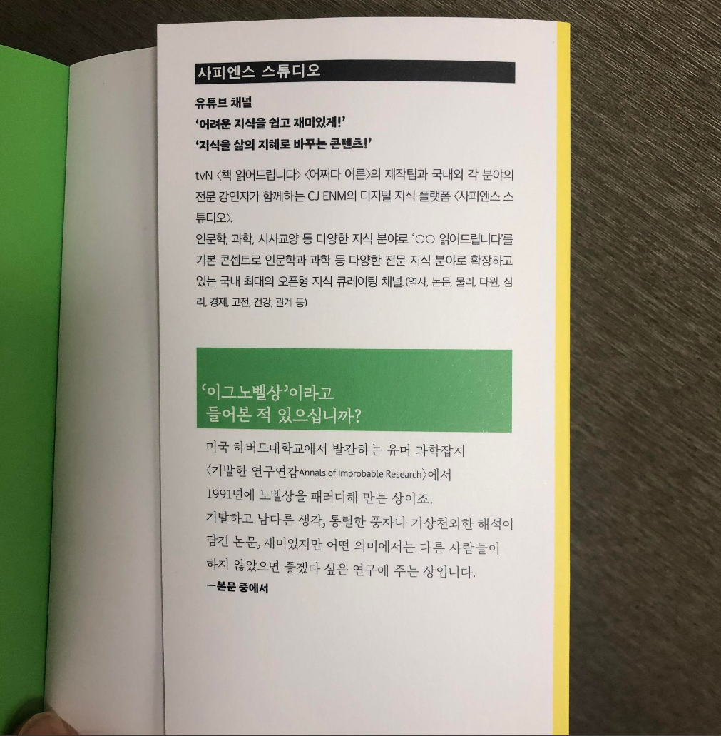 최근 사피엔스스튜디오의 <이그노벨상 읽어드립니다>가 나왔습니다.