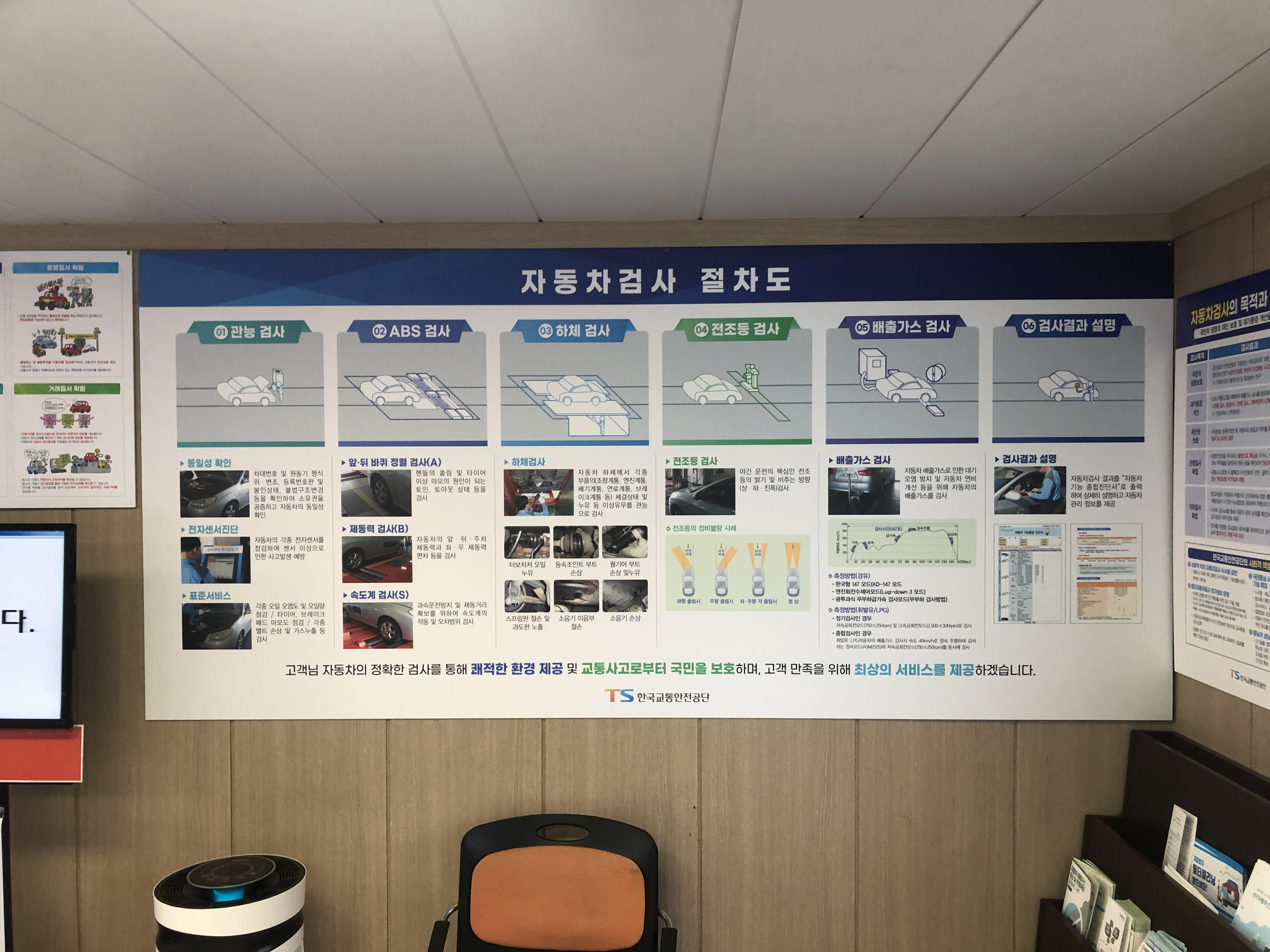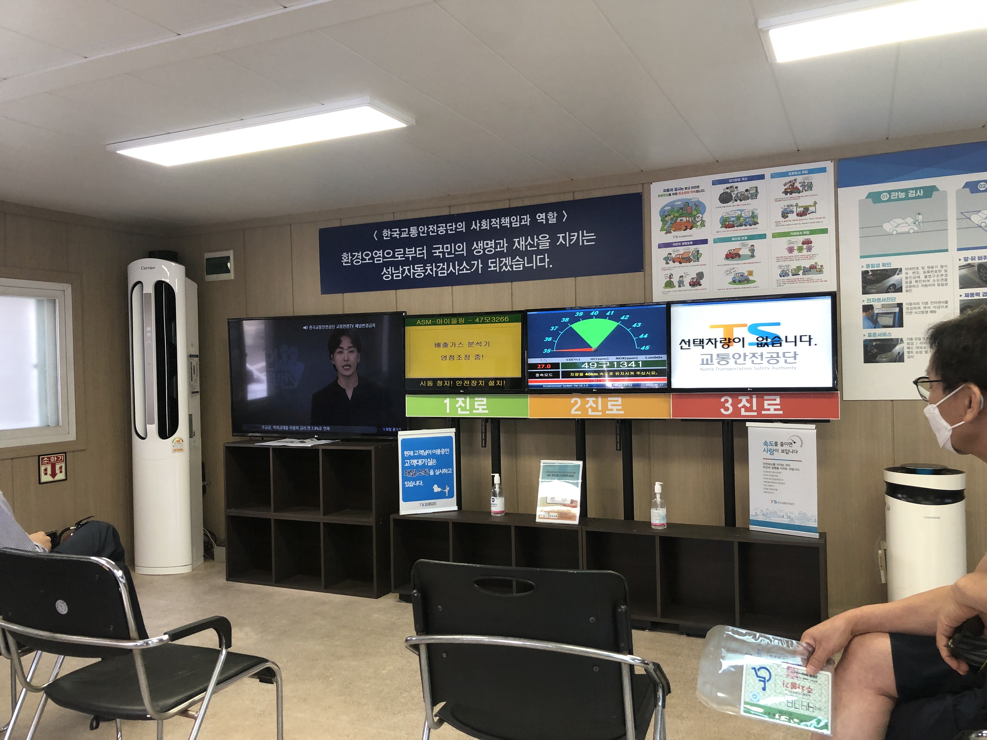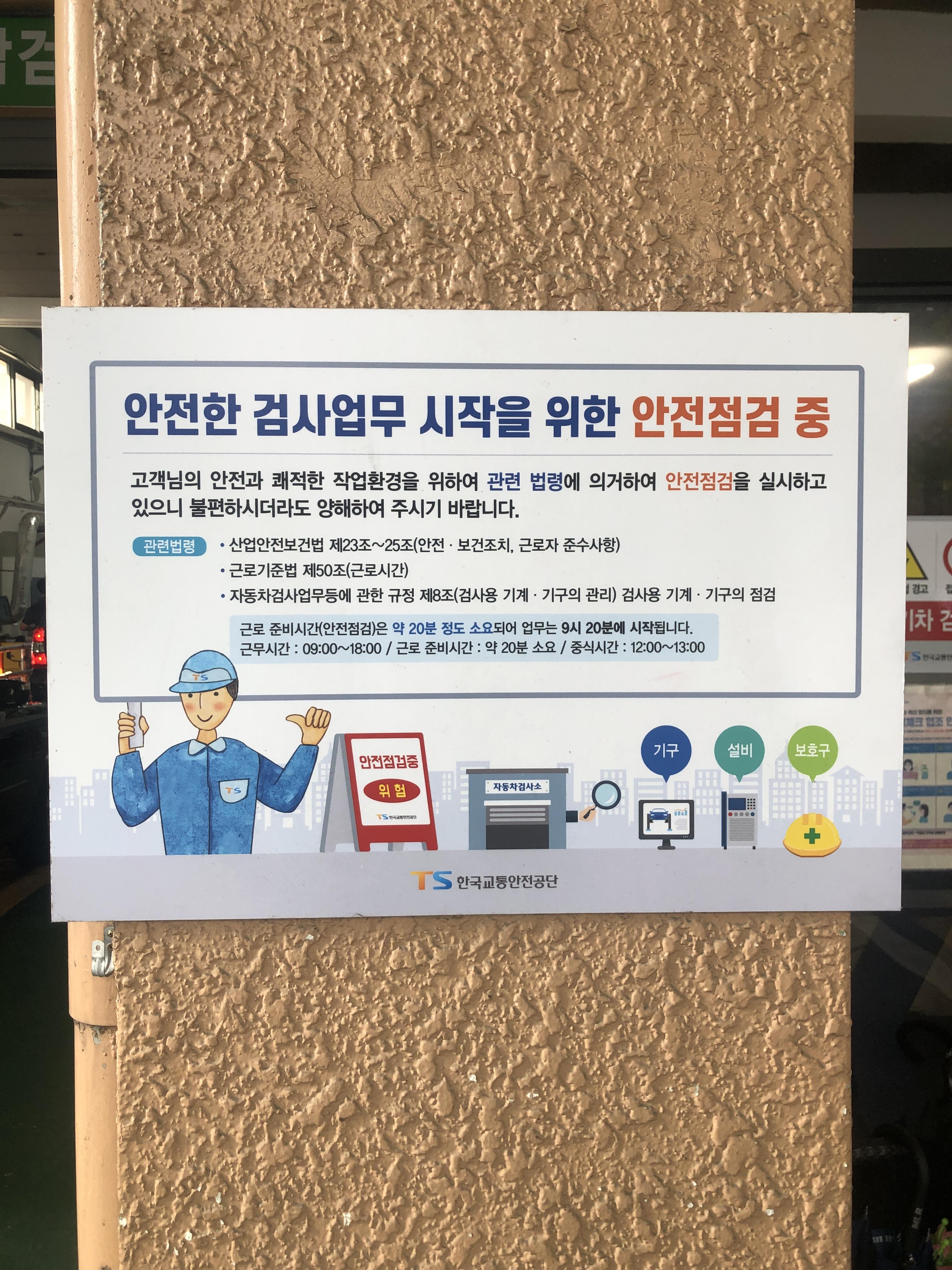 제 차례가 되면 검사하시는 분이 오셔서 간단한 안내를 하고 고객대기실로 이동해서 대기하라고 안내합니다. 가실때 차량등록증 소지여뷰를 확인하지는 않았지만, 차량 트렁크에 짐이 있는지는 물었습니다.