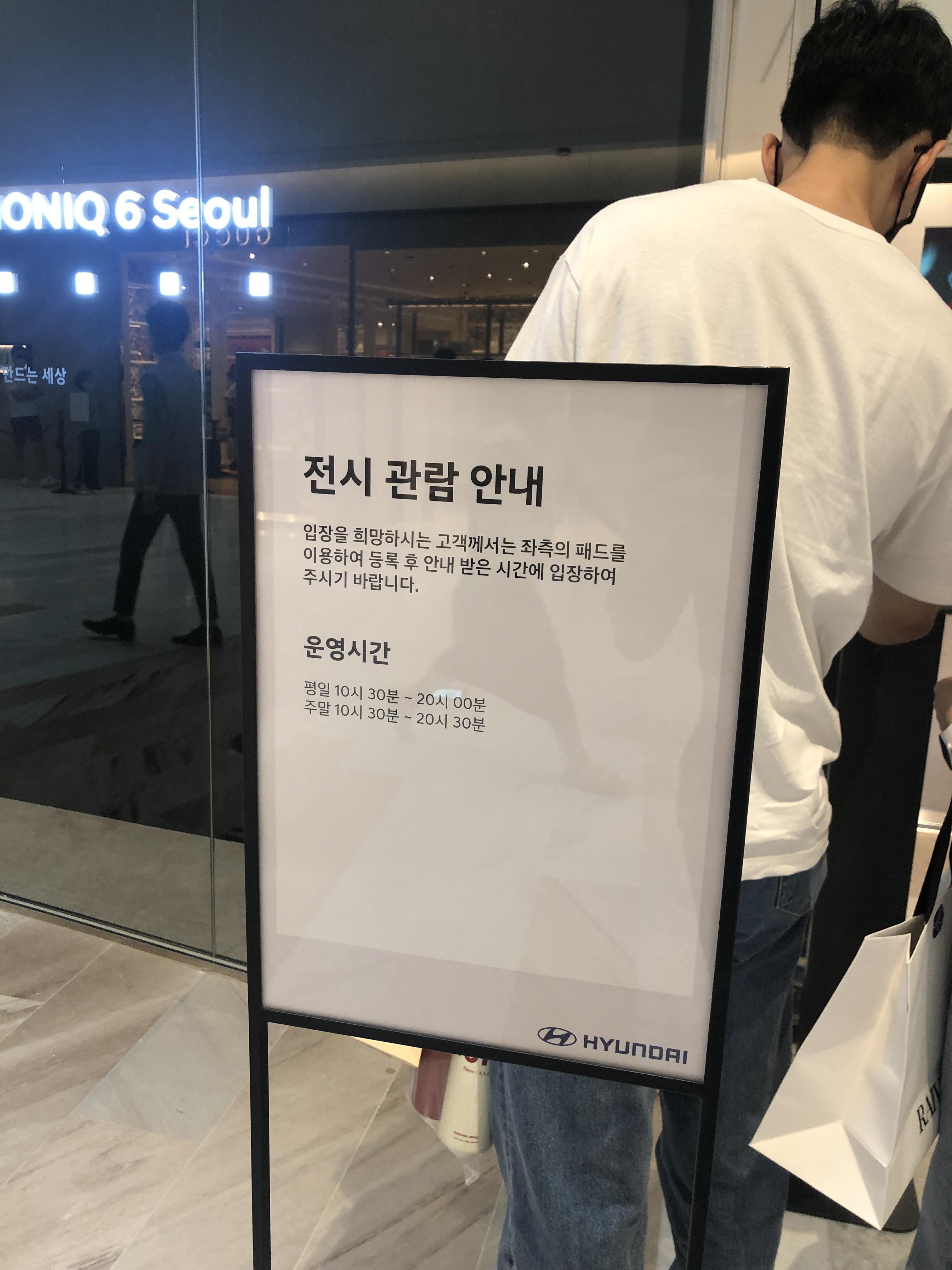 일요일인만큼 1시간 30분 이상을 대기해야만 했습니다. 원래 더현대서울은 주차장도 헬이고, 입장도 헬이고, 정말 더현대서울 갈때마다 불쾌한 경험들을 많이 하는데요. 너무 사람도 많고 복잡하고 들어갈때부터 진이 빠지니까요. 역시나 아이오닉6 더현대서울 전시장에도 마찬가지였습니다.