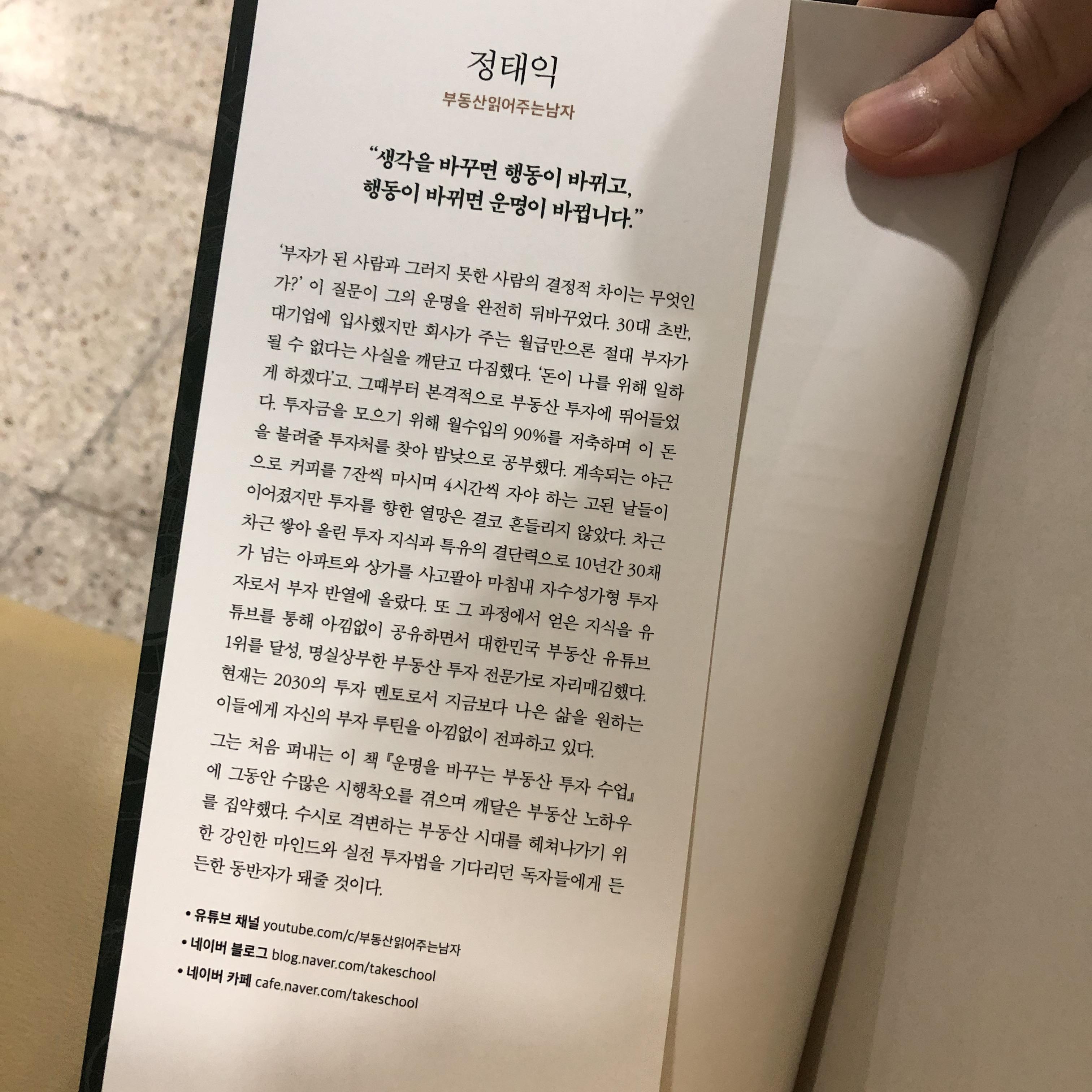 실제로 제가 <운명을 바꾸는 부동산 투자 수업> 기초편을 읽었을 때, 저자 부읽남 정태익은 이 책의 내용에 꽤 신경을 쓴 것으로 보였습니다.