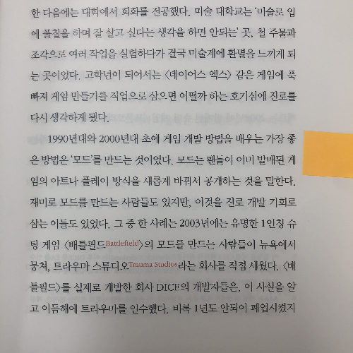 내가 직접 해본 게임을 누가 만들었는지, 또 그 게임을 만들었던 사람들은 어떤 과정으로 그 게임을 만들고 그 이후에는 어떤 게임 프로젝트에 투입이 되었는지 하나씩 알아가다보면 시간 가는 줄 모르고 이 책을 읽게 됩니다.