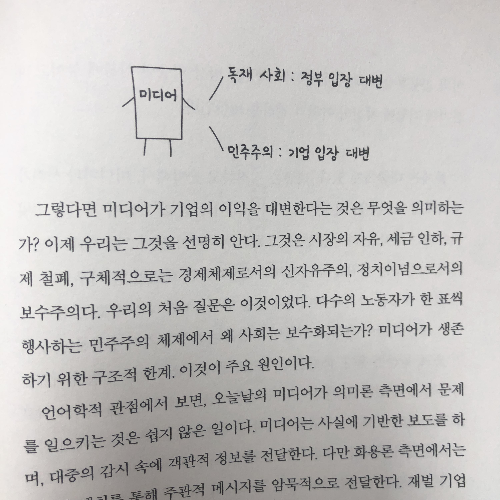 독재사회에서 미디어는 정부 입장을 대변하고, 민주주의에서 미디어는 기업 입장인 돈을 대변합니다.