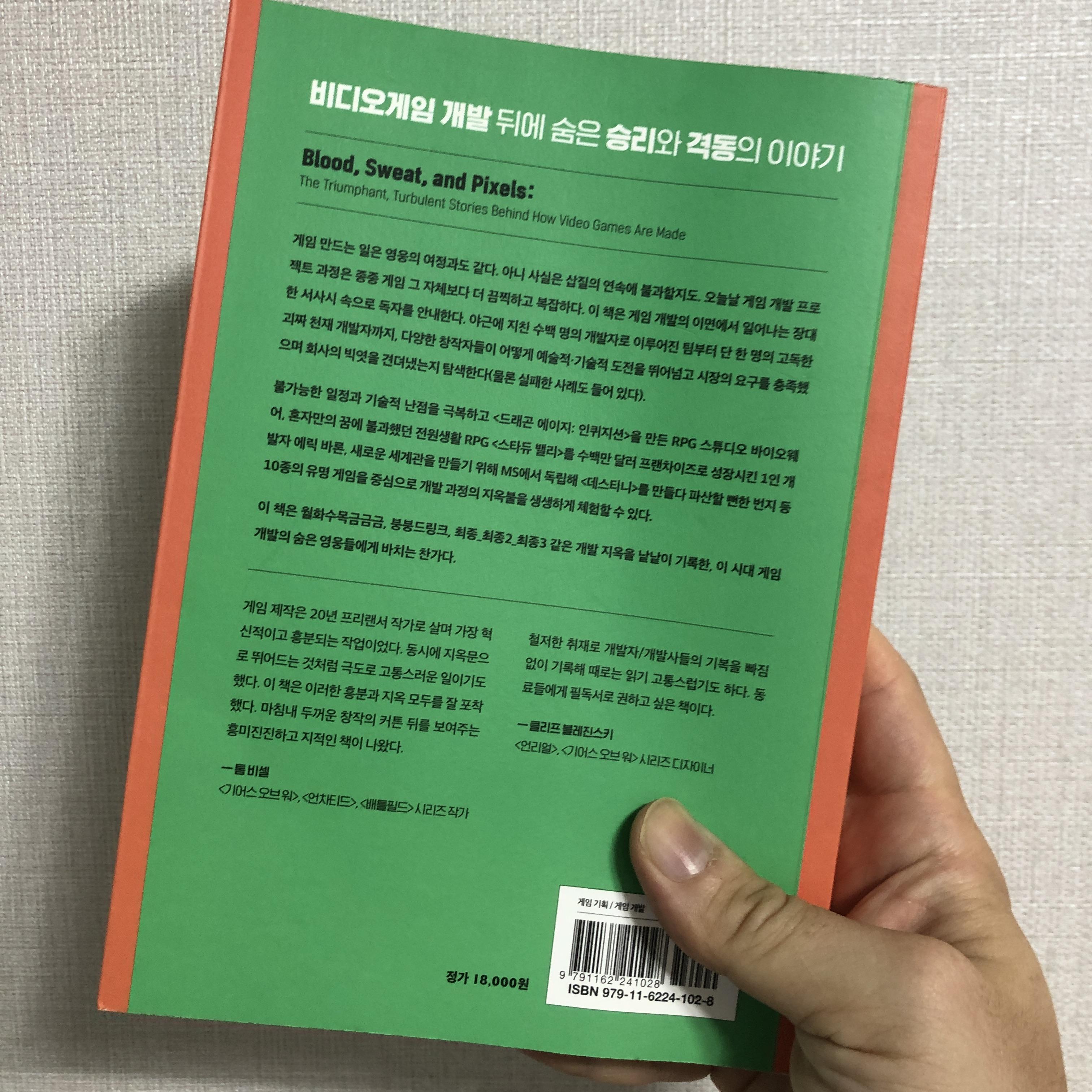최근에 한빛미디어의 <피, 땀, 픽셀>을 읽었습니다.