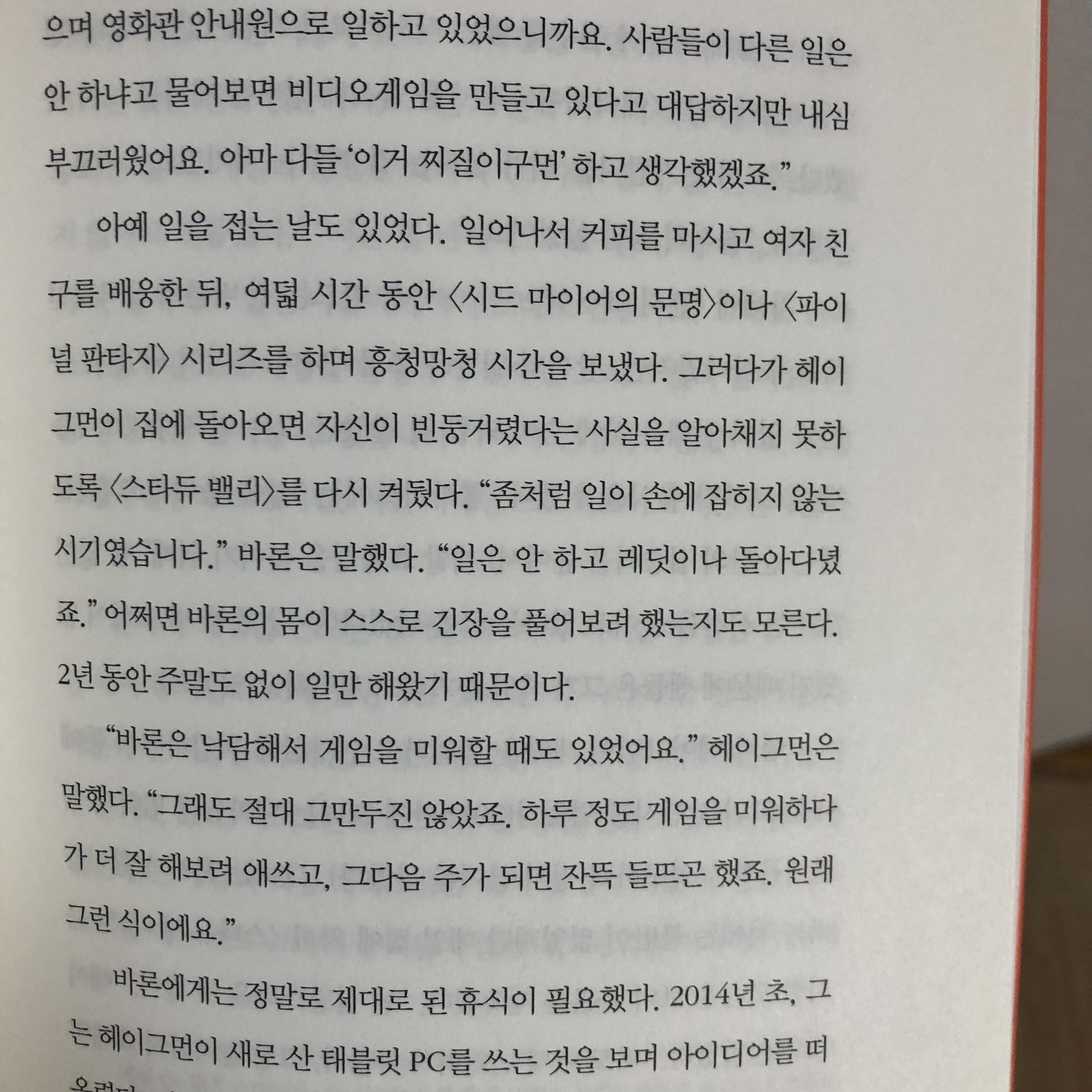 특히 제이슨 슈라이어는 게임제작에 참여한 주요 인물들을 구체적으로 인터뷰하면서 다루고 있기 때문에 인터뷰를 기록하고 정리한 책이라고 봐도 무방합니다. (이러한 글 작성 방식은 후속편인 <피, 땀, 리셋>에서도 동일하게 이어집니다.)
