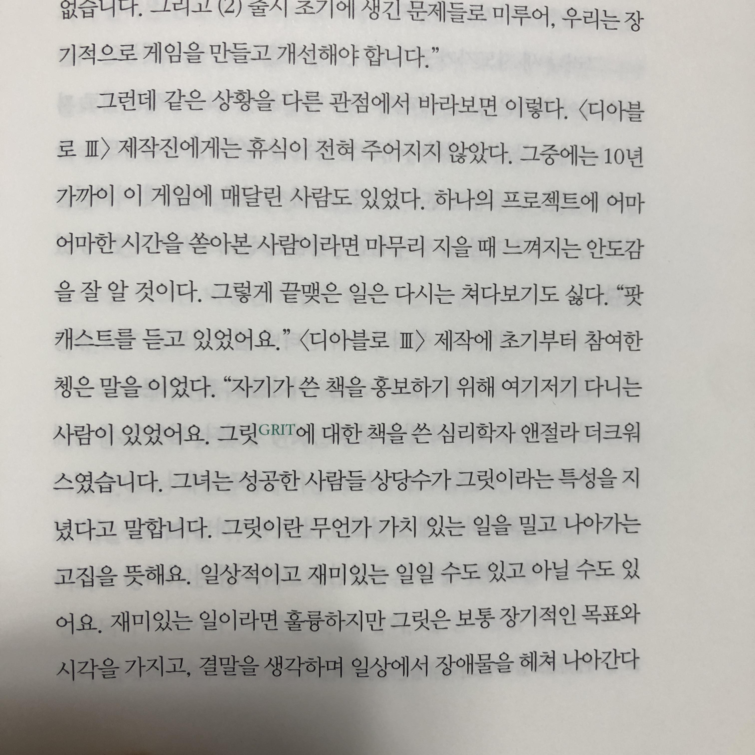 저도 그릿을 매우 인상 깊게 읽었지만, 블리자드 개발자들의 그릿은 정말 존경스럽습니다.