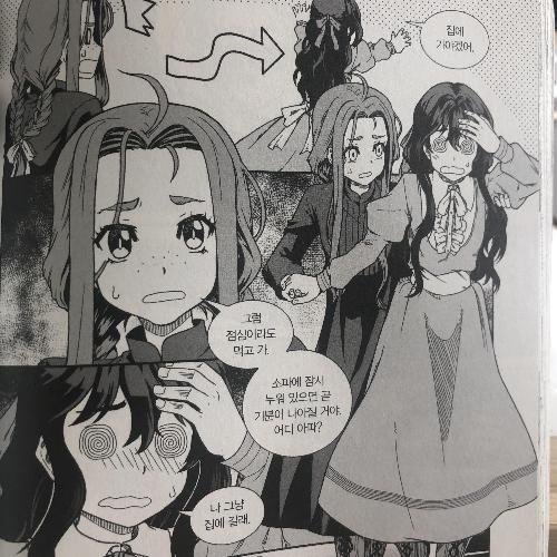 다이애나 배리는 앤이 준비한 포도주를 마시고 취하는데요. 다이애나 배리의 취한 모습을 만화답게 매우 위트있고 귀엽게 표현하고 있습니다.