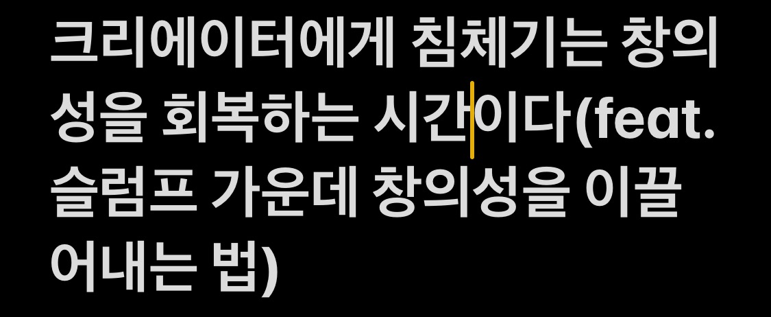 어치피 피할 수 없는 슬럼프라면, 창의성을 회복하는 시간으로 삼길 바랍니다.
