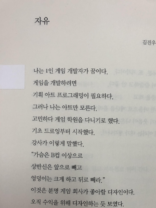 하지만 그러한 어려움 가운데에도 노력하는 김지우 학생의 고군분투, 그리고 자본주의 상업성에 물들지 않고, 자신이 하고 싶은 것을 하기 위해 용기있게 공부하는 화자의 노력을 보면서, 언젠가 이 꿈을 꼭 이루었으면 하는 응원의 마음이 듭니다.
