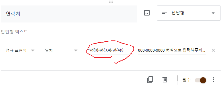 구글설문에서 제각각으로 입력하는 전화번호 형식 통일시키는 방법이 없을까?