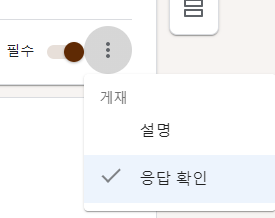 이렇게 케밥 메뉴 아이콘을 통해서 응답확인을 클릭하면 단답형 텍스트 입력창 하단에 응답형식을 확인할 수 있는 메뉴가 등장을 합니다.