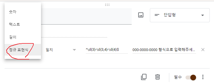 이번에는 구글설문에서 정규표현식을 살펴보겠습니다.