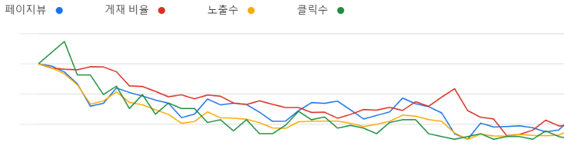 초록색은 클릭수, 사실 클릭이 수입에서 가장 중요하다고 볼 수 있습니다.