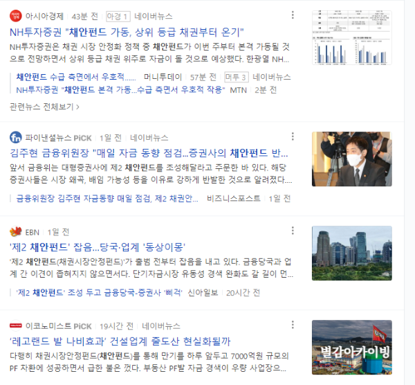우선 네이버에서 PF와 채안펀드에 관해서 검색을 해봅니다.