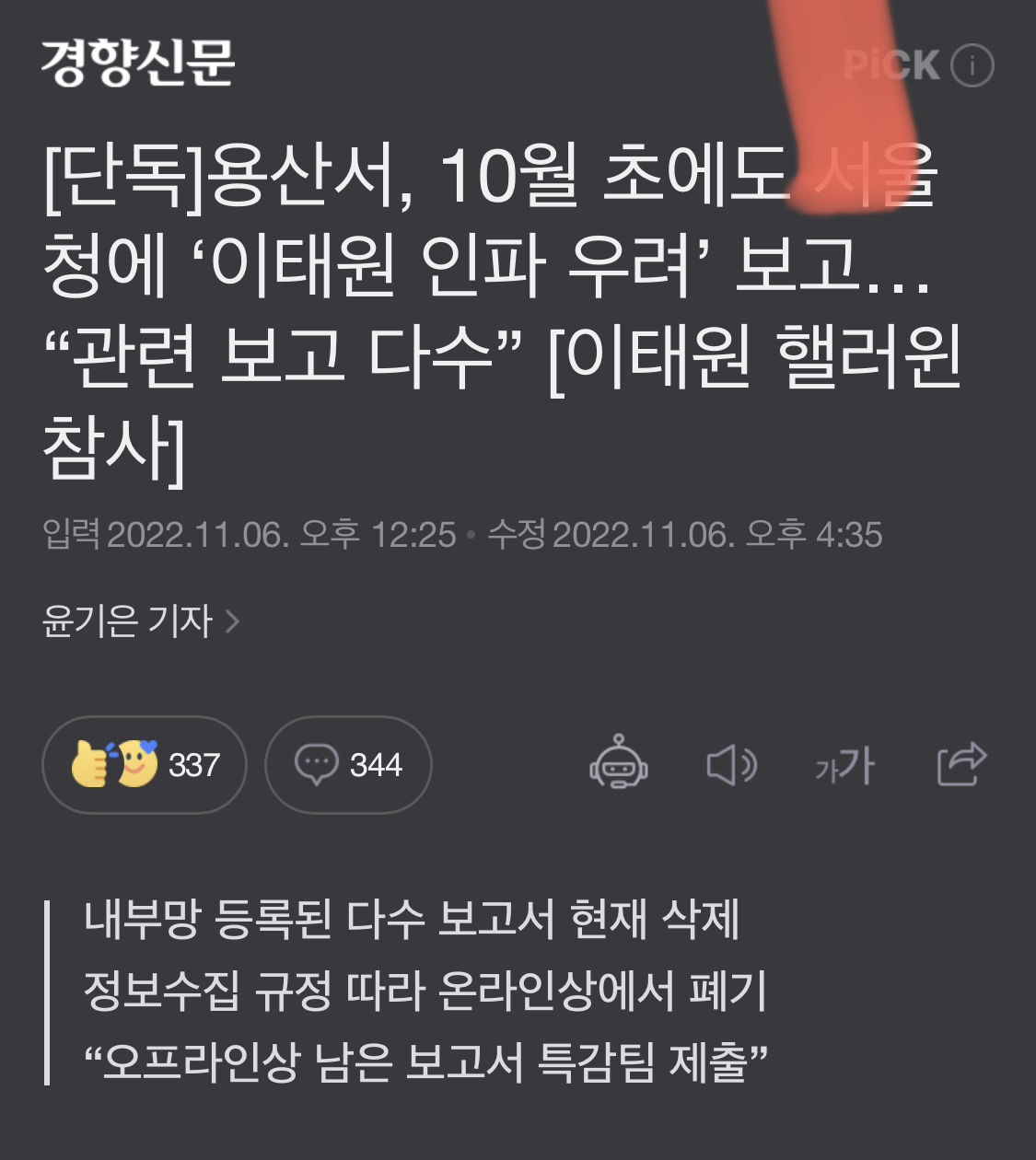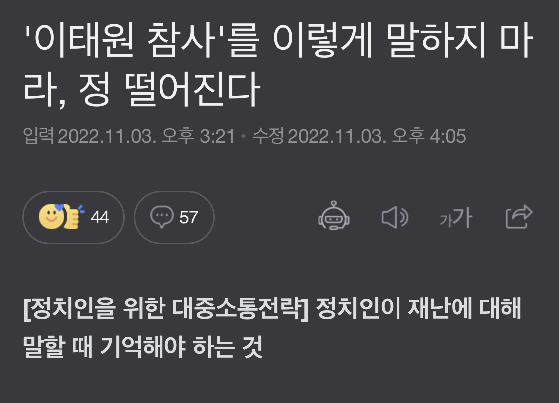 오마이뉴스에서 나온 1029참사와 관련된 다음 기사가 인상적이었습니다.