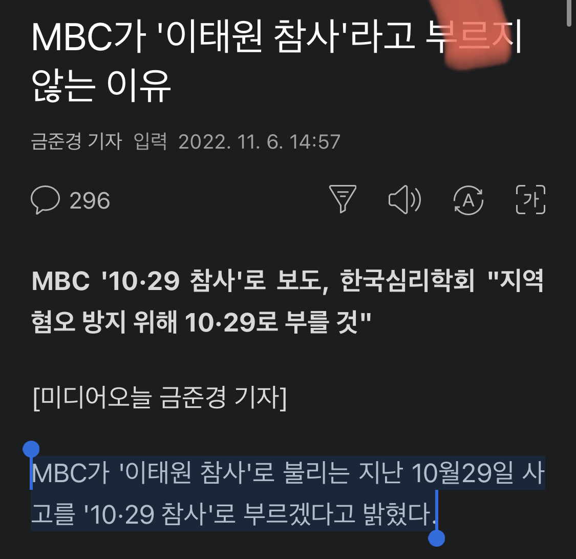 다음은 MBC에서 1029 참사라고 한 이유에 관해서 미디어오늘이 다룬 기사의 일부입니다.