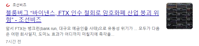 최근 FTX사태와 관련한 기사의 헤드라인입니다.