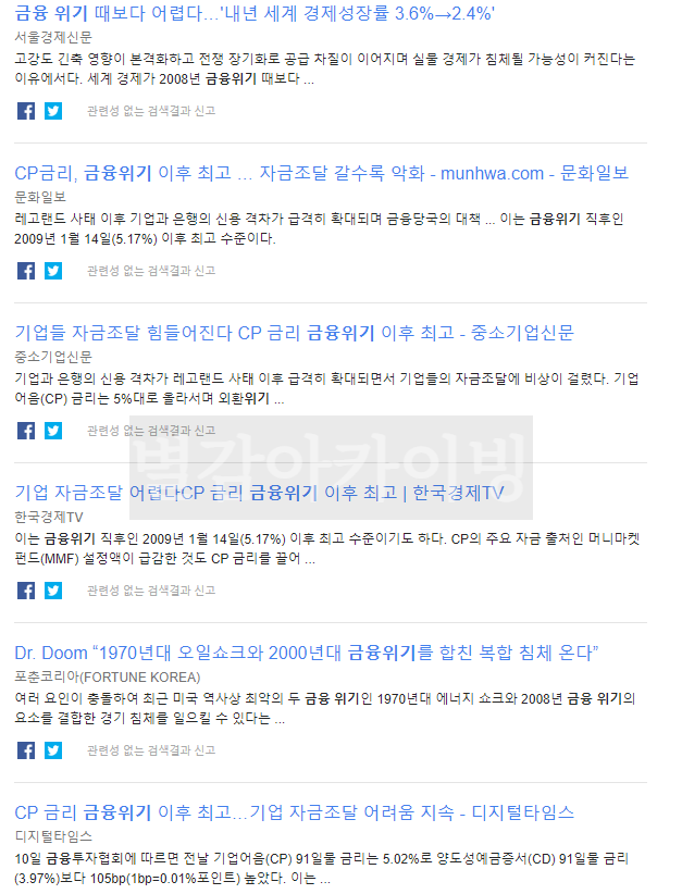 그러다보니 구글알리미에서도 CP금리의 급상승과 관련된 기사가 계속해서 나오고 있습니다.
