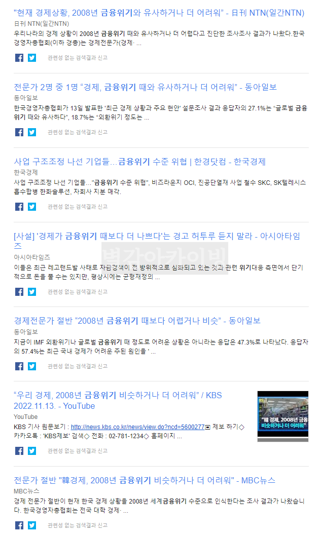 구글알리미를 통해서 살펴본 2008년 금융위기와 현재 금융위기에 관한 기사를 하나씩 살펴보고자 합니다.