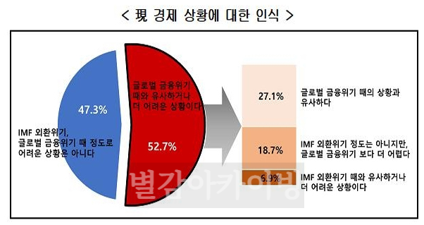 이들중에서 절반이 한국 경제 상황을 2008년 글로벌 금융위기 수준으로 인식하고 있다는 것인데요.