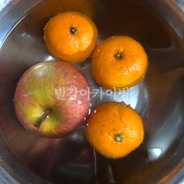 저는 보통 사과 1개에 귤 3개를 사용합니다. 구하기 쉽기 때문이죠.