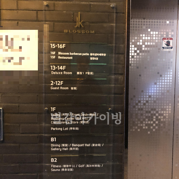 JK블라썸호텔 엘리베이터 내부 및 주요 패키지 가격