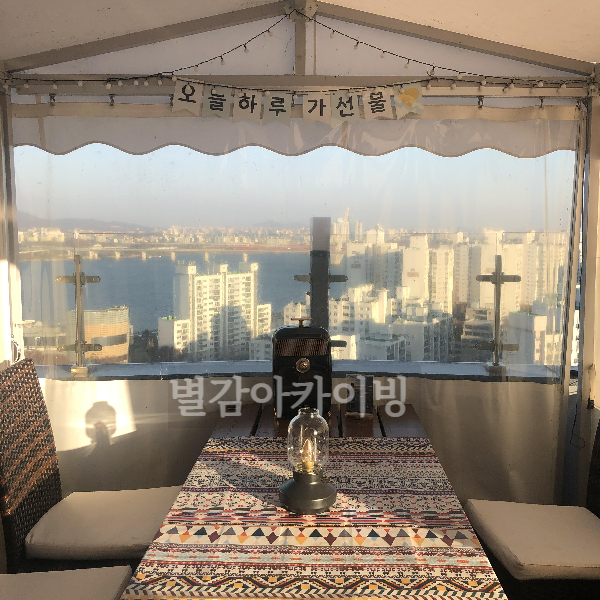 아름다운 한강뷰 루프탑에서 즐기는 글램핑 정말 매력적입니다. 이곳에서 연말모임하면 색다른 기분을 낼 수 있습니다.