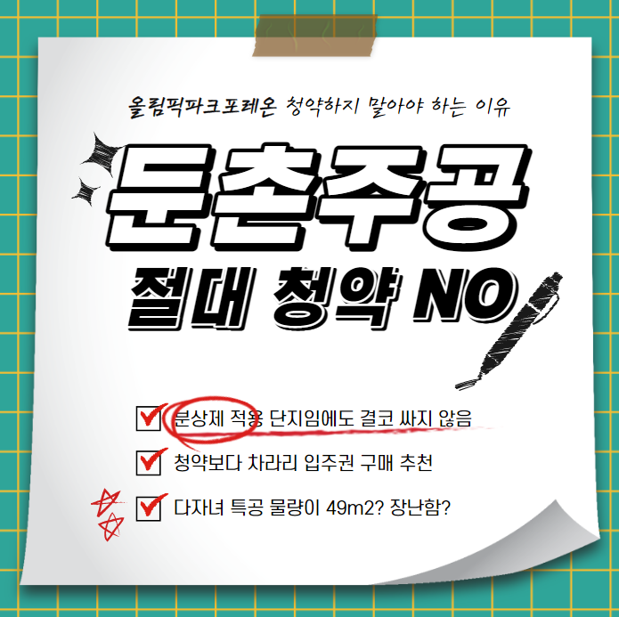 그러니 이점이 개선되지 않는다면 저는 절대 올림픽파크포레온 청약을 해서는 안된다고 생각합니다.